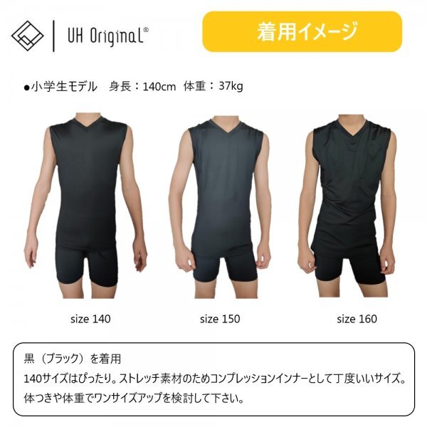 | 着替えも恥ずかしくない! ぴったりフィットでもサラサラでインナーが気にならない! シンプルさを追求し、日本国内でデザイン・監修した完全オリジナルなUHブランドインナー。 コンプレッションインナーとしてお子様のスポーツやトレーニングに力を発揮!筋力をサポートしてパフォーマンスを上げ、 筋損傷の回復効果があることを確認した研究から、疲労回復効果もあります。ユーエイチブランドの製品は日本国内の品質評価機構にて生地検査合格を取得。紫外線防止指数の測定値はUPF50+、紫外線遮蔽率は99.8%でお子様の日焼け防止効果も抜群です。吸汗速乾なスポーツインナーは長時間のスポーツでも快適に過ごすことができます。衿口はVネックタイプで、ユニフォームの下に着てもインナーが見えず主張しません。ハイマルチフィラメント糸を使用した生地は柔らかな肌触りで、夏冬問わず全シーズンに対応!ぴったりフィットは脇がキツいと感じることが多いため、パフォーマンスを上げる締め付けも残しつつ、脇部分を切返すことでストレスを無くしたスマートフィット構造! 4方向に伸びるストレッチ素材のため、着るのも脱ぐのもカンタンで、日常的に通学用のインナータンクトップとしても使えます。 ■組成表示■ ポリエステル92% ポリウレタン8% ■使用環境■ 野球、サッカー、フットボール、ラグビー、陸上、テニス、バスケットボール、バドミントン、バレーボール、卓球、ソフトボール、ジョギング、ランニング、トレーニング、スキー、スノーボード、ダンス、ヨガ、フィットネス、登山など、あらゆるスポーツに対応したコンプレッションインナーがお子様のパフォーマンスを向上させます。 本体とステッチが同色のため、公式戦にも対応してます。 ※ご利用のパソコン、モニター環境によって、画像の色味が異なって見える場合がございます。予めご了承下さい。 | ||