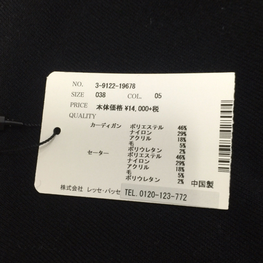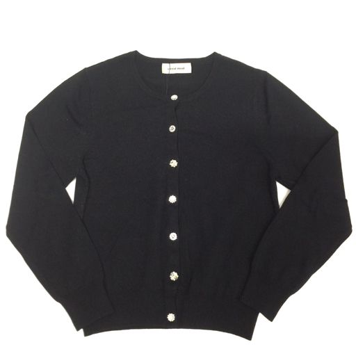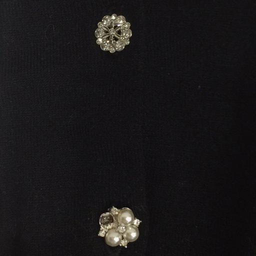| 美品 レッセパッセ サイズ 38 ビジューボタン クルーネック カーディガン レディース 黒 タグ付き LAISSE PASSE |