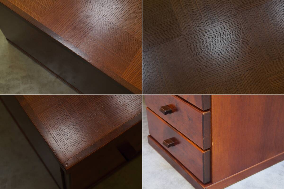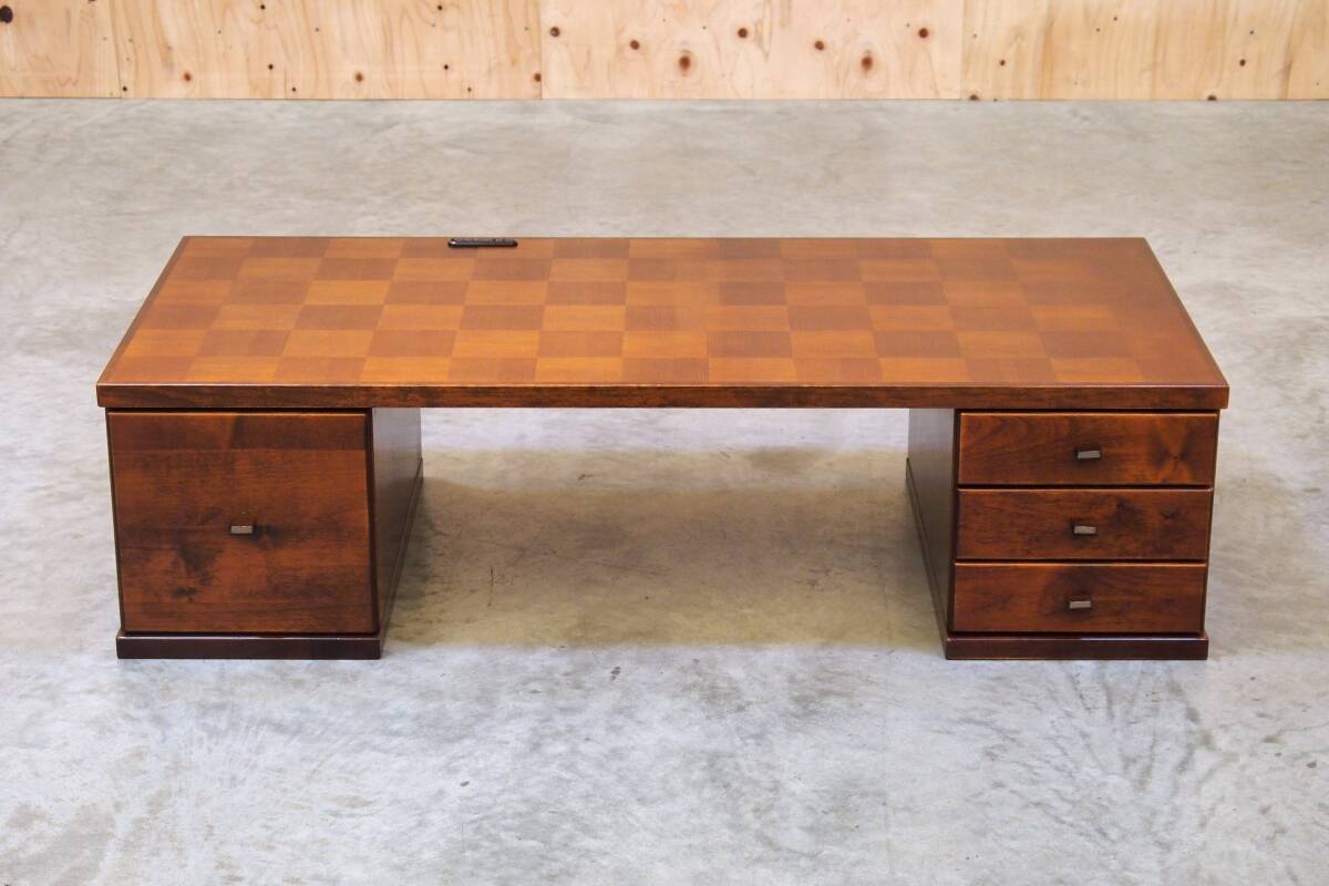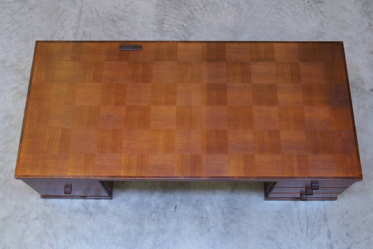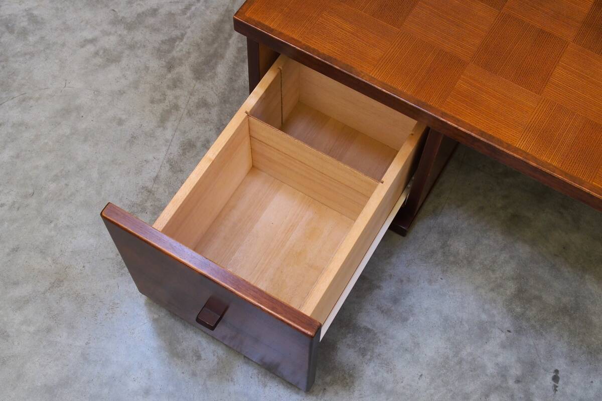 zyt2388ジ 昭和レトロ家具 文机 両袖机 市松模様天板 幅130cm 帳場机/座敷机/木製/寄木細工/チェッカー/デスク『仙台市 引取歓迎』70806-05 | |||