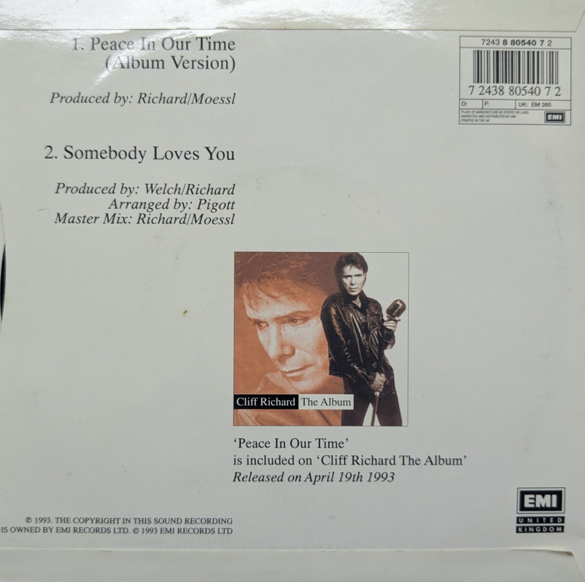 | 商品名稱 : | ☆CLIFF RICHARD/PEACE IN OUR TIME1993'UK EMI 7INCH |