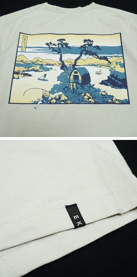 ★EKAL/エカル 接触冷感 UKIYO-E LAKE 半袖Tシャツ メンズM/ライトグレー/コットン他/クルーネック/浮世絵&1646000246