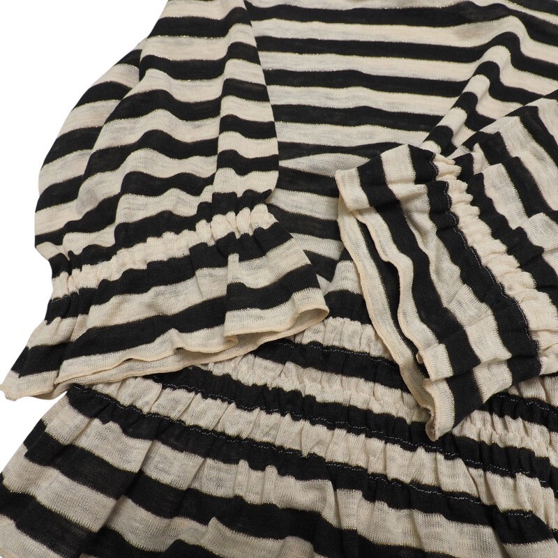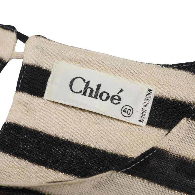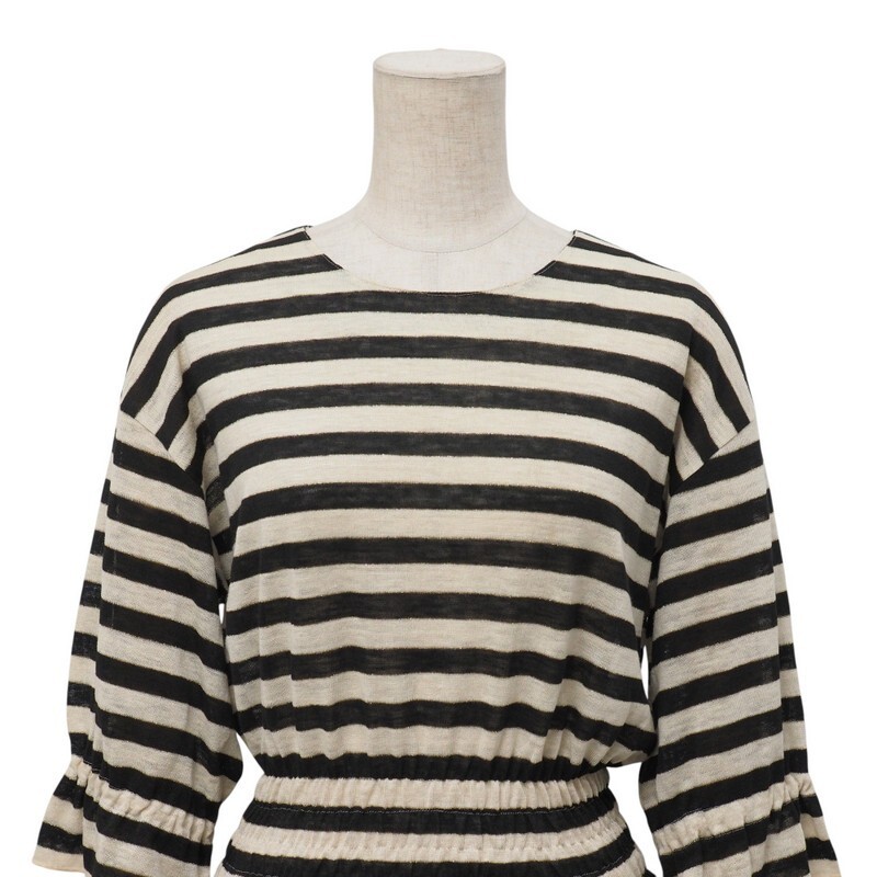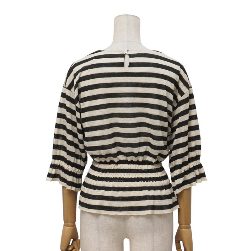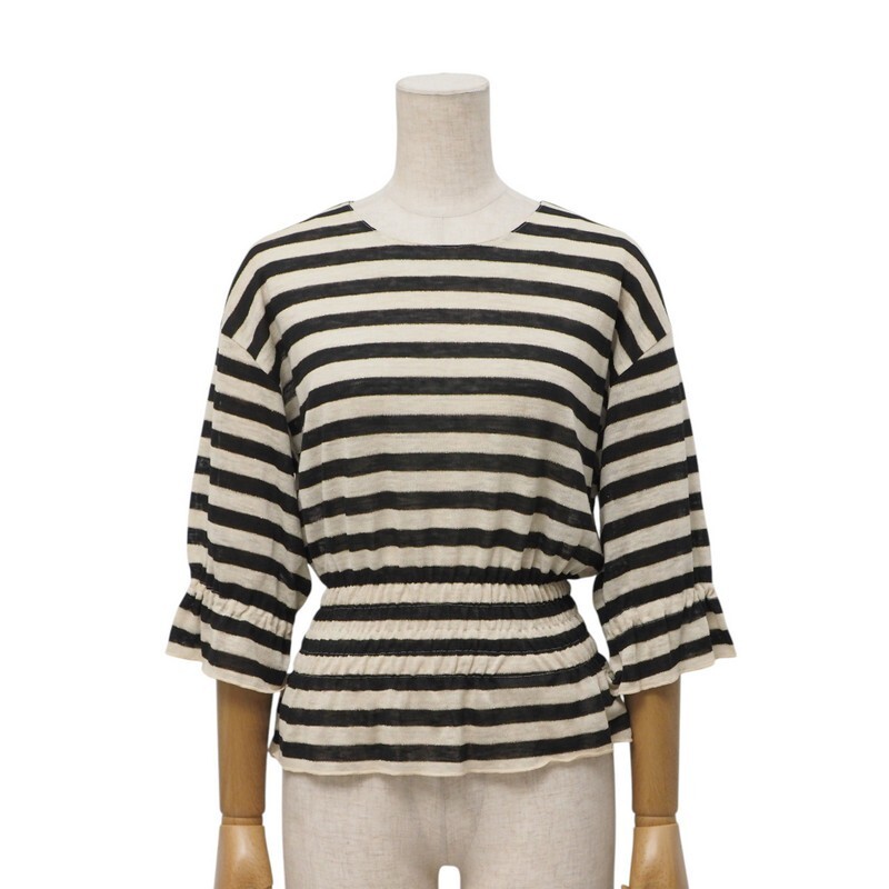 | GS0340=クロエ/CHLOE*リネン*ボーダー柄*ラメ*ショート丈*七分袖カットソー*サイズ40*アイボリー×ブラック系 | |||