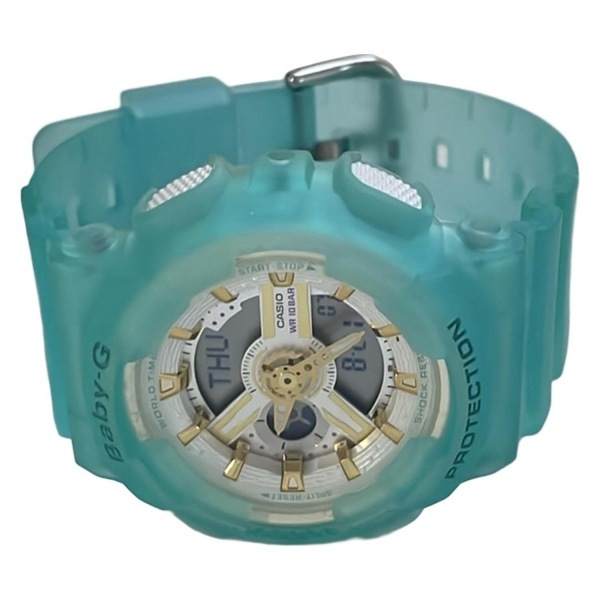 商品説明 ブランド:CASIO(カシオ) 型番:BA110SC コンディションレベル:【7】きれいめ 実寸サイズ フェイス : 約 2 cm × 2 cm ケース : 約 4.5 cm × 4.3 cm (リューズ含まず) ベルト幅 : 約 1.9 cm 腕周り : 約 15 cm ~ 20.5 cm 商品詳細 ジャンル:腕時計 商品名:Baby-G デザイン:シーグラス易碎品限空運,非易碎品可使用海運。 ・カラーズ 文字盤カラー:シルバー ベゼルカラー:ブルーグリーン ケースカラー:ブルーグリーン ベルトカラー:ブルーグリーン ベルトの素材:ラバー 男女別:レディース ムーブメント:クォーツ 動作状況:【確認済み】 動作確認済みではございますが、電池残量は不明です。電池交換はお客様ご自身でお願いいたします。 付属品:箱、ケース、取扱説明書(箱破損)付属品について コンディションの備考 ※あくまで商品の外観ダメージです。動作状況をご確認の上、ご入札くださいませ。 【ケース】 ・全体的 ⇒ 傷 / くすみ 変色 ・ベゼル ⇒ 傷 / くすみ 変色 ・裏蓋 ⇒ 傷 ・風防 ⇒ 傷 【ベルト】 ・全体的 ⇒ 傷