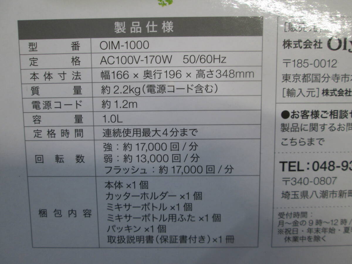 | 商品名稱 : | ● OLYMPIC ジュースミキサー ガラス容器 1000cc チタンカッター OIM-1000 短時間使用品 美品 ● |
