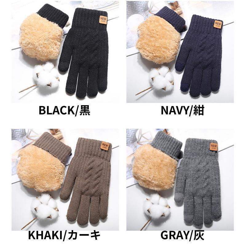130H05 メンズ手袋 スマホ対応 裏起毛 ニット 防寒 通勤 通学 グレー