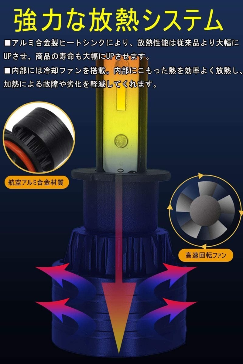 放熱効果&耐久性抜群:このled h3は熱伝導率の高い航空アルミ合金ボディーと銅製LED基板の組み合せが、瞬時に熱を放散することができるほか、耐久性を持ちながら軽量化も実現します。さらに、10000RPM冷却ファンが内蔵され、熱がより早く放出することができます。多重放熱システムのおかけで、LEDバルブの放熱効率が向上されます。よって、LEDチップをが保護され、光の減衰を低減し、安定した発光が続くことができます。