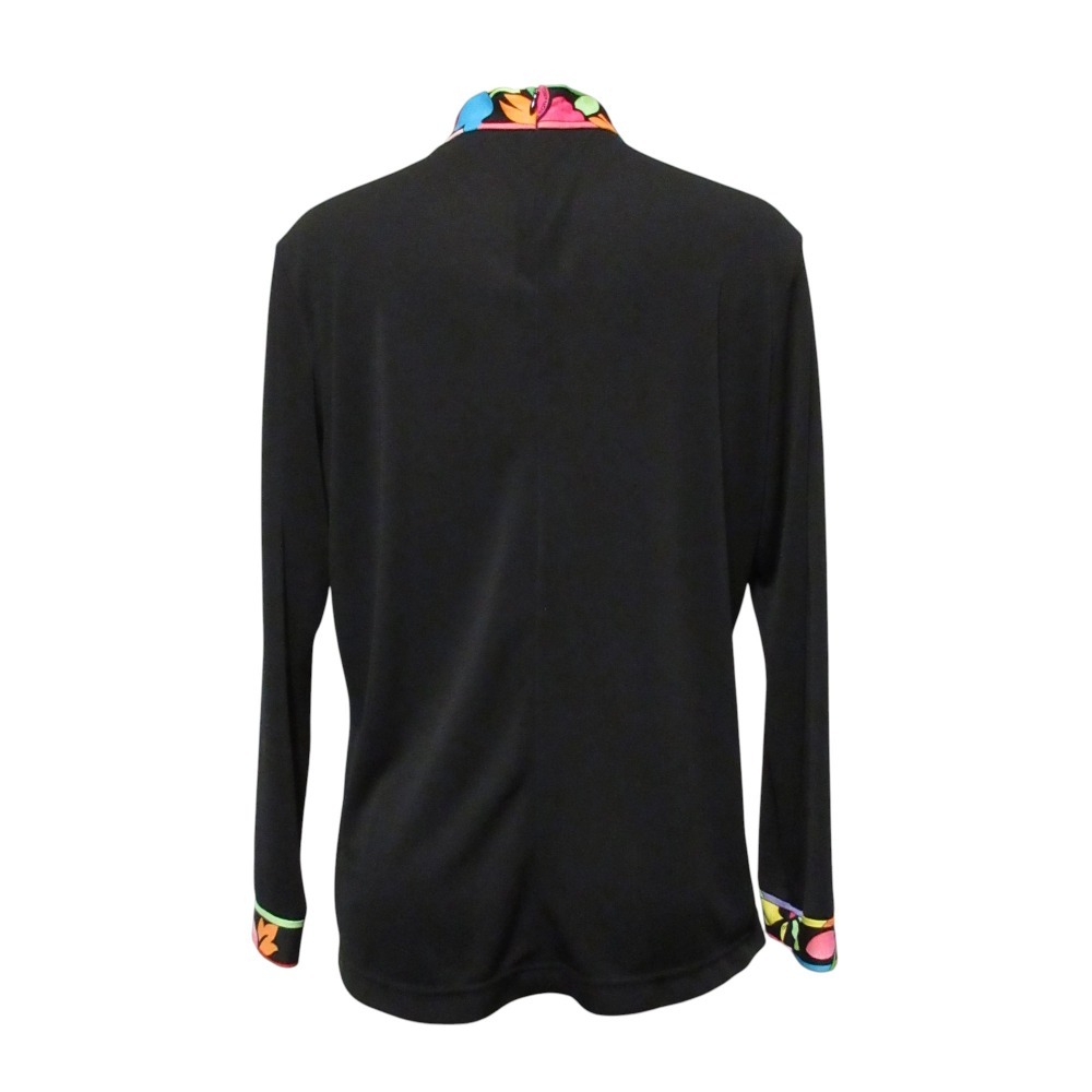 美品 LEONARD SPORT レオナールスポーツ フラワートリム ハイネック カットソー 42 ブラック