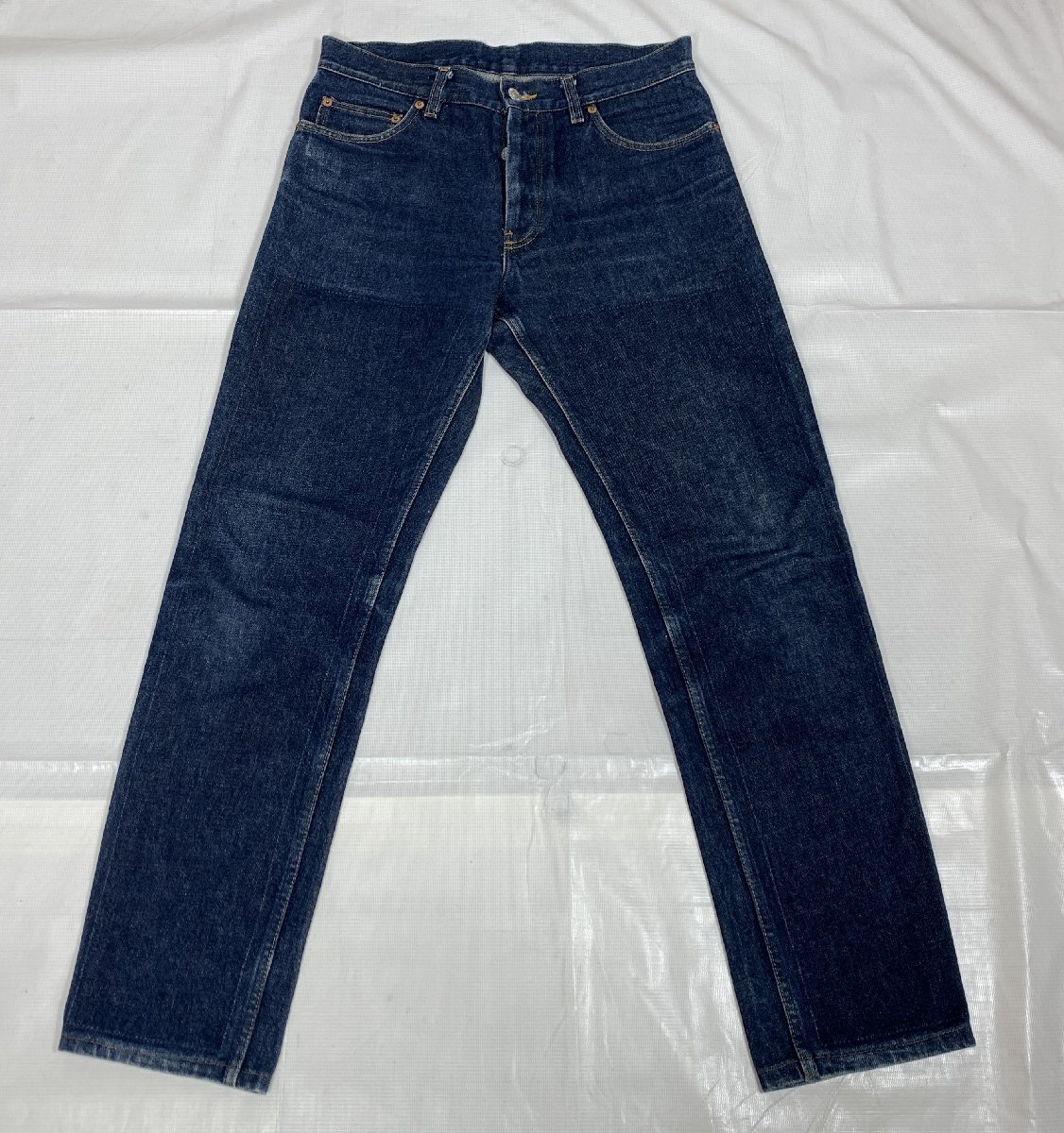下記情報と商品名、画像よりご判断下さいませ。 表記サイズ:34 ウエスト:約 82cm ヒップ:約 100cm 股上:約 27cm 股下:約 78cm 腿(もも)幅:約 28cm 裾(すそ)幅:約 19cm 保管臭のようなニオイあり 当方の実測で多少の誤差がございます。ご了承くださいませ。 実店舗にてお客様からお買取させて頂いた商品を出品しております為、使用頻度等に関しましては把握できておりません。 新品状態と比べて、中古流通過程にて多少サイズや着用感が変化している可能性がございますので、予めご了承下さい。 尚、本商品は正規品であるものとして取り扱っておりますが、万が一正規店などで非正規品と鑑定された場合は、返金保障させて頂きます。 | ||||