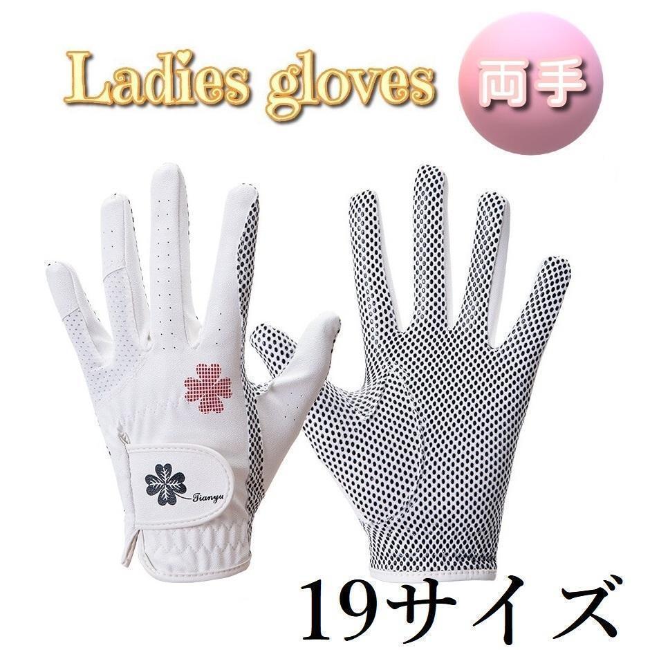レディース ゴルフグローブ 両手 ゴルフ手袋 19サイズ ブラック-ホワイト