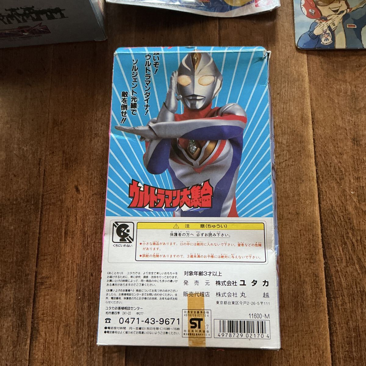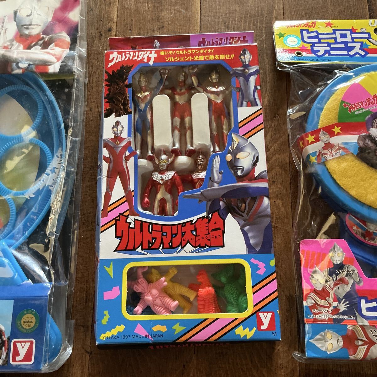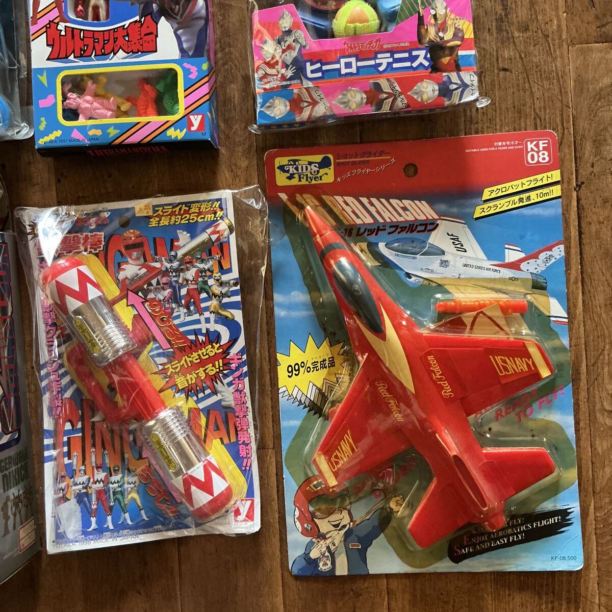 【商品の説明】 商品名: ①ウルトラマンダイナ ウルトラマン大集合 1997年製 怪獣付 ユタカ ②ウルトラマン スペースバブルス 大きなシャボン玉であそぼう 1998年製 ユタカ ③ウルトラマンティガヒーローテニス 1996年製 ユタカ ④のびる獣撃棒 1998年製 ユタカ ⑤超時空世紀 オーガスサウンドガン タカトクトイス ⑥レッドファルコン ユニオンモデル 未使用未開封当時物 大きさ: ①縦×横×高さ=約25cm×12cm×3cm ②縦×横×高さ=約35cm×21cm×4.5cm ③縦×横×高さ=約28cm×15cm×3cm 【商品の状態】 使用状況 : 6点セットです。 6点とも未使用未開封ですが、1990年代の古い商品です。 外箱は、くすみなどの経年変化はあるものの、大きな汚れキズはないようです。 中の様子は、ビニール袋にきちんと封印されています。 ⑤の外箱上部が浮かんでいます。写真参照 他は、当時のままの状態だと思います。 写真を見てご判断下さい。 どなたかお好きな方が楽しんでくださると嬉しいです。 注意事項 : 大切に保管していましたが、古い商品ですので、ノークレームノーリターンでお願いします。 一度 人の手に渡った物です。完品をお求めの方は入札をお控え下さい。 【その他】 梱包は、リサイクル品を使用する場合があります。 不安な点 質問があれば、気兼ねなくご質問下さい。わかる範囲で丁寧にお答えします。 できるだけ 古き良き時代 当時のそのままをお届けしたいと思います。 >