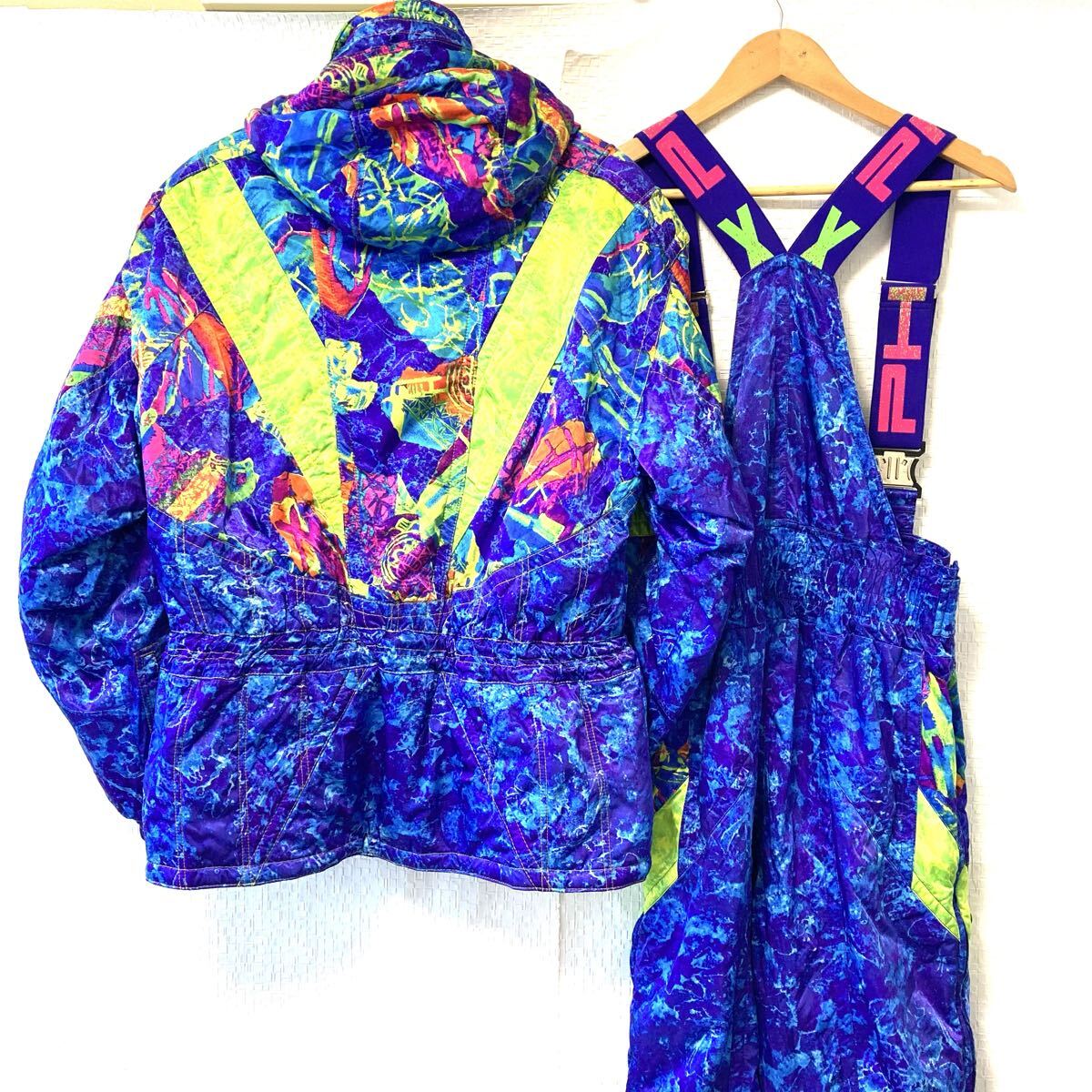 この度は私の商品をご覧頂きありがとうございます。頻繁に商品出品致しますのでフォロー頂けたら嬉しいです。 サイズ: L 平置き時: 着丈73㎝、身幅54㎝、裄丈87㎝。 腰幅42㎝、全長108㎝、股下74㎝、裾幅17㎝。 ※素人採寸考慮 フェニックスのスノーウェア上下セットです。ナイロン100%、中綿入りのジャケットとパンツのセットです。 レトロなデザインでヴィンテージ感漂うお洒落な1着です! 目立ったダメージはなく、まだまだ着用頂けるお品です! 他にも沢山出品しておりますので下のマイオークションからチェックしてみてください!当方の商品はすべて一点ものですので買わなければもう手に入りません!完全売切り!この機会がラストチャンス! 【注意】 発送方法は発送時トラブル防止の為、 【飛脚宅配便 100サイズ 2kg】 発送のみです。福島県から発送致します。正確な送料は佐川急便HPから確認ください。離島、沖縄は除く。 商品管理上、当方商品すべて出品後包装済みの為、其々の発送となりますので他の商品との同梱不可をご注意ください。