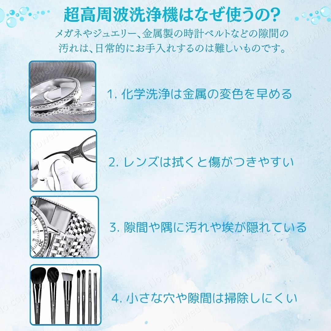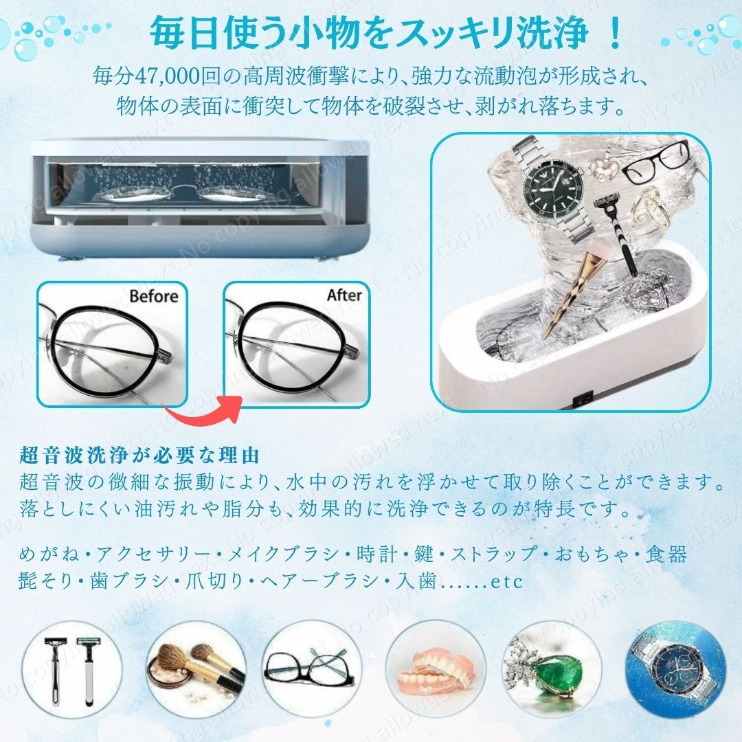 ・メガネ、アクセサリー、時計のバンドなど一度にまとめて洗浄OK。