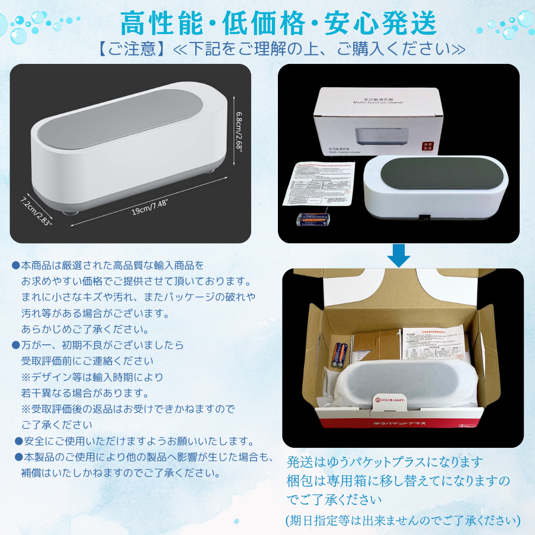 ・水と電池だけで使える超音波洗浄機