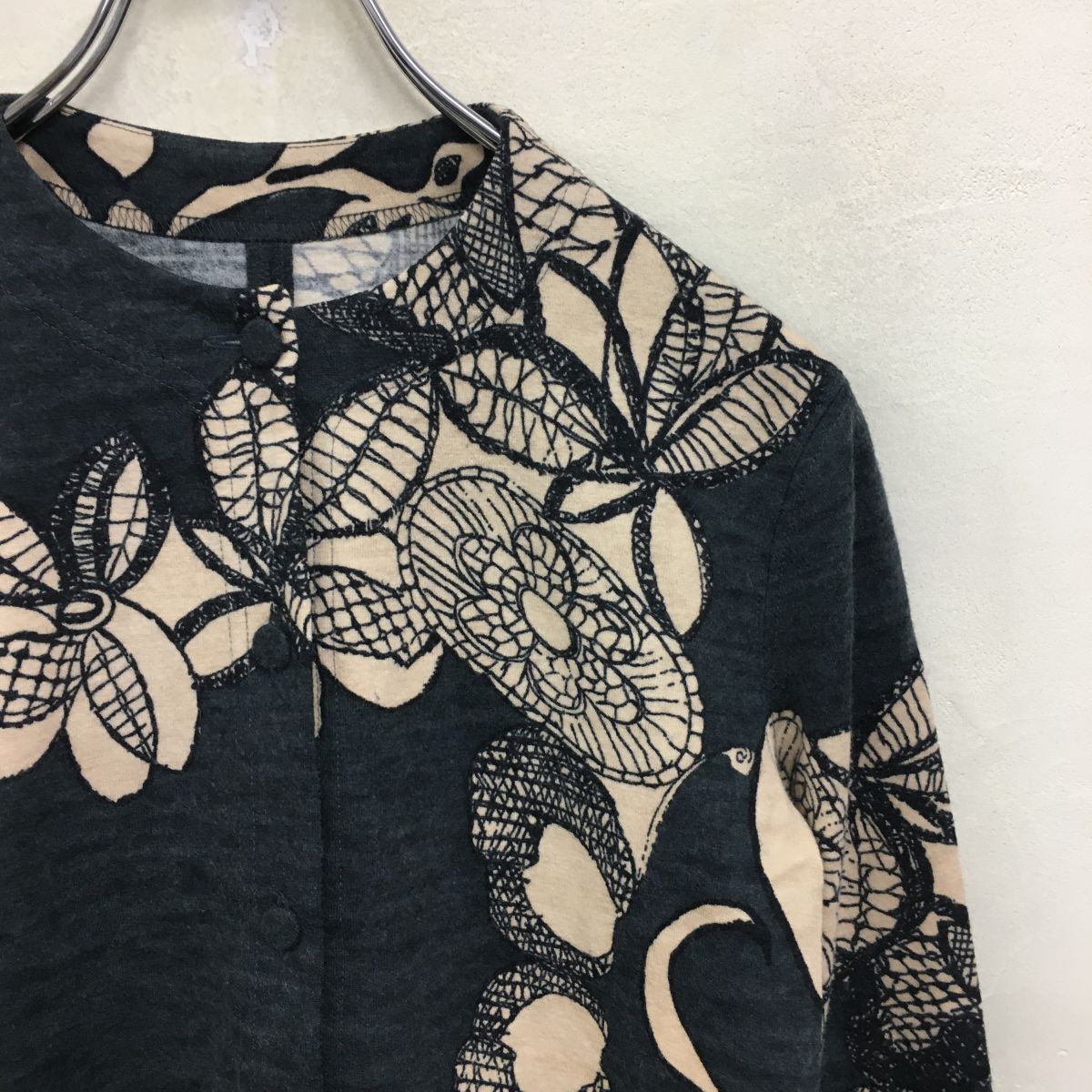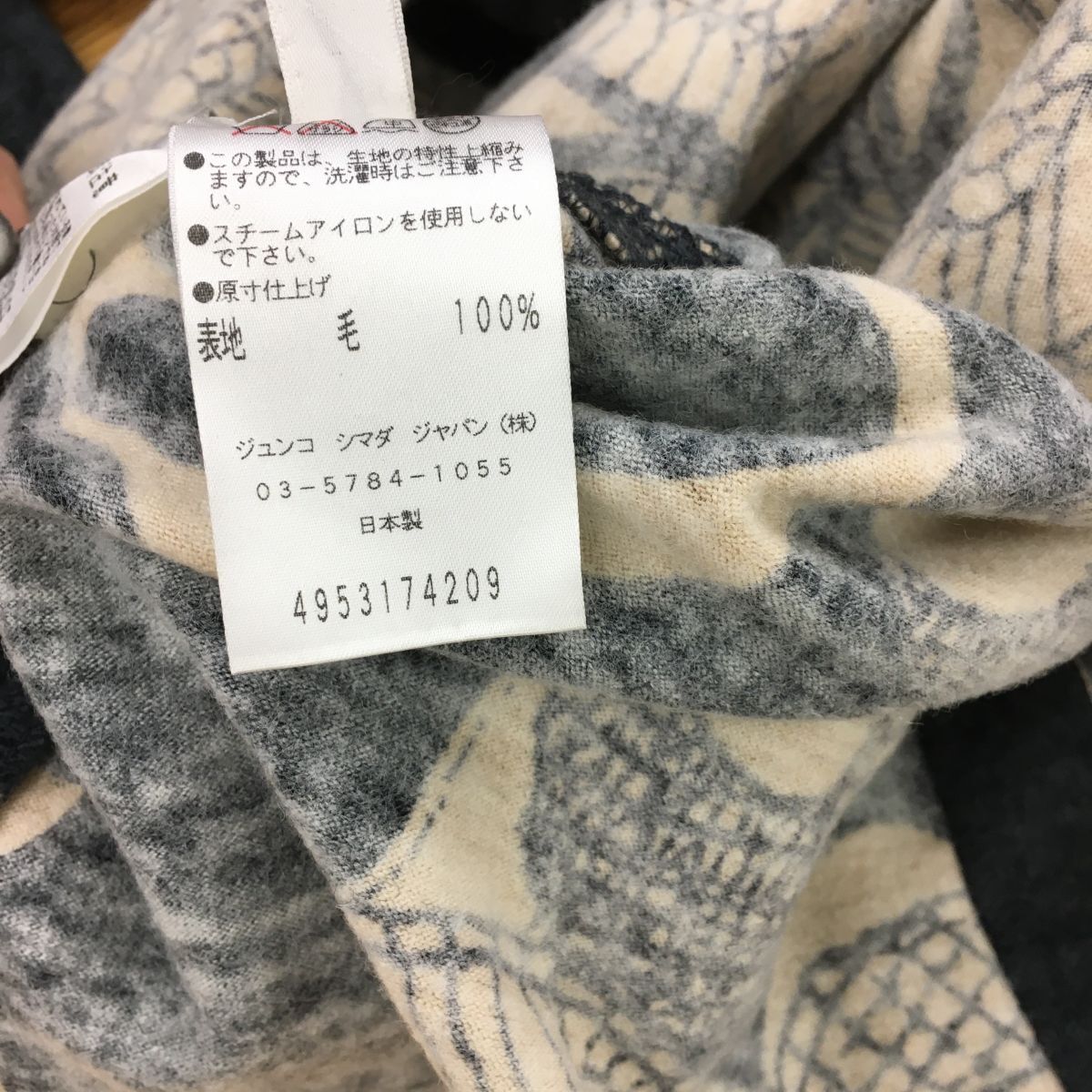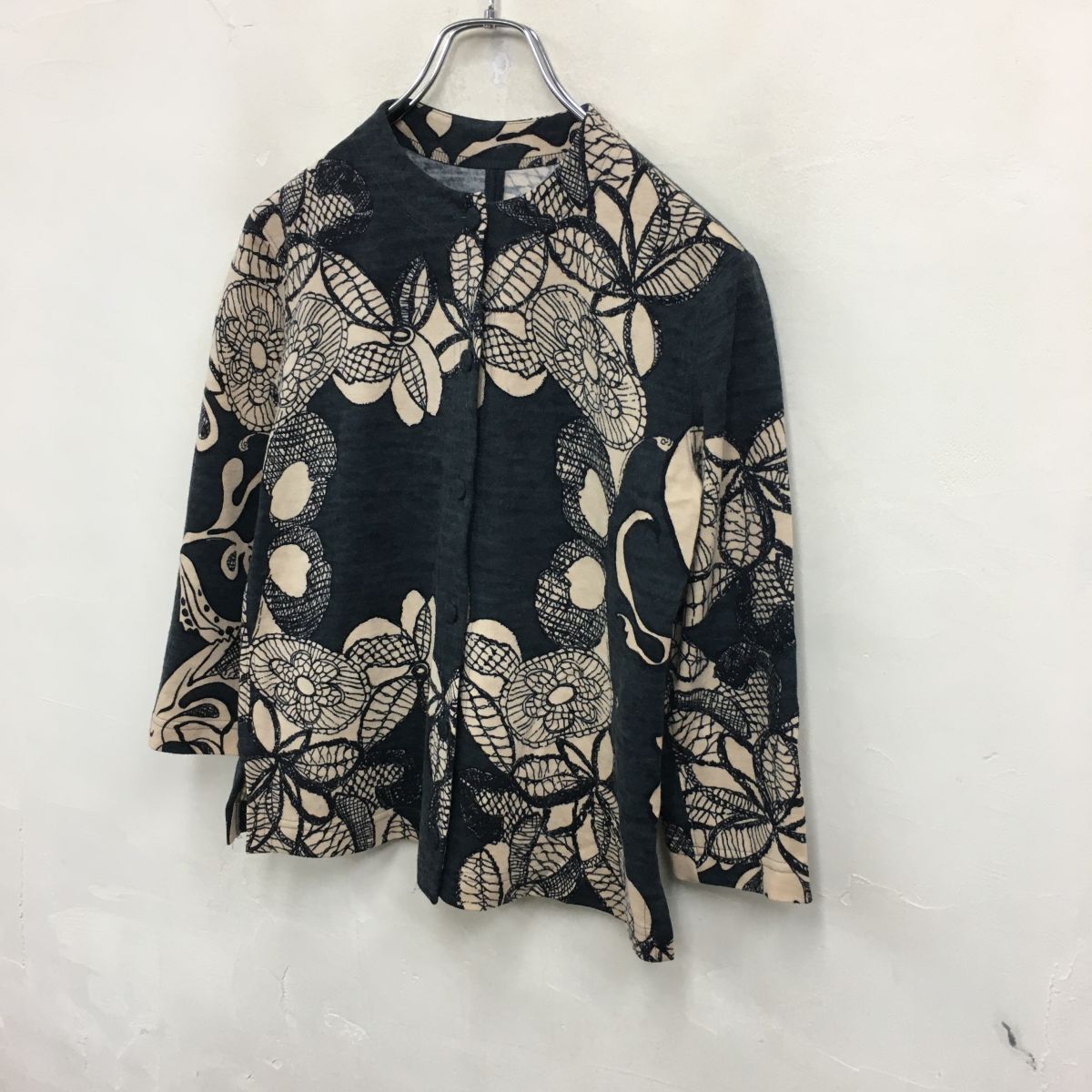 こちらは49AVジュンコシマダのフラワープリントノーカラーウールシャツでございます。