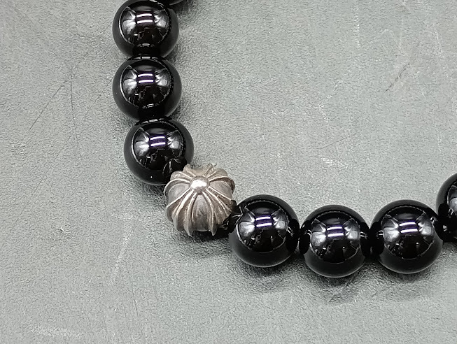 シンプルなビーズの中、 クロスが 存在感を放つブレスレットです