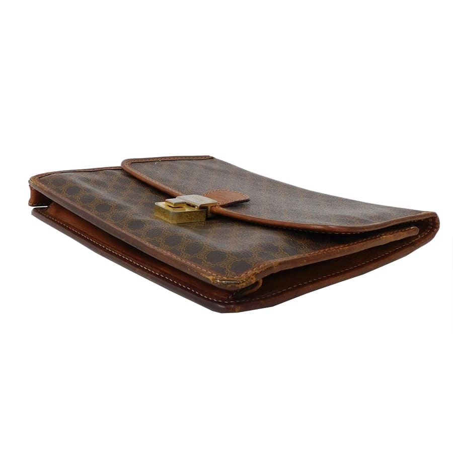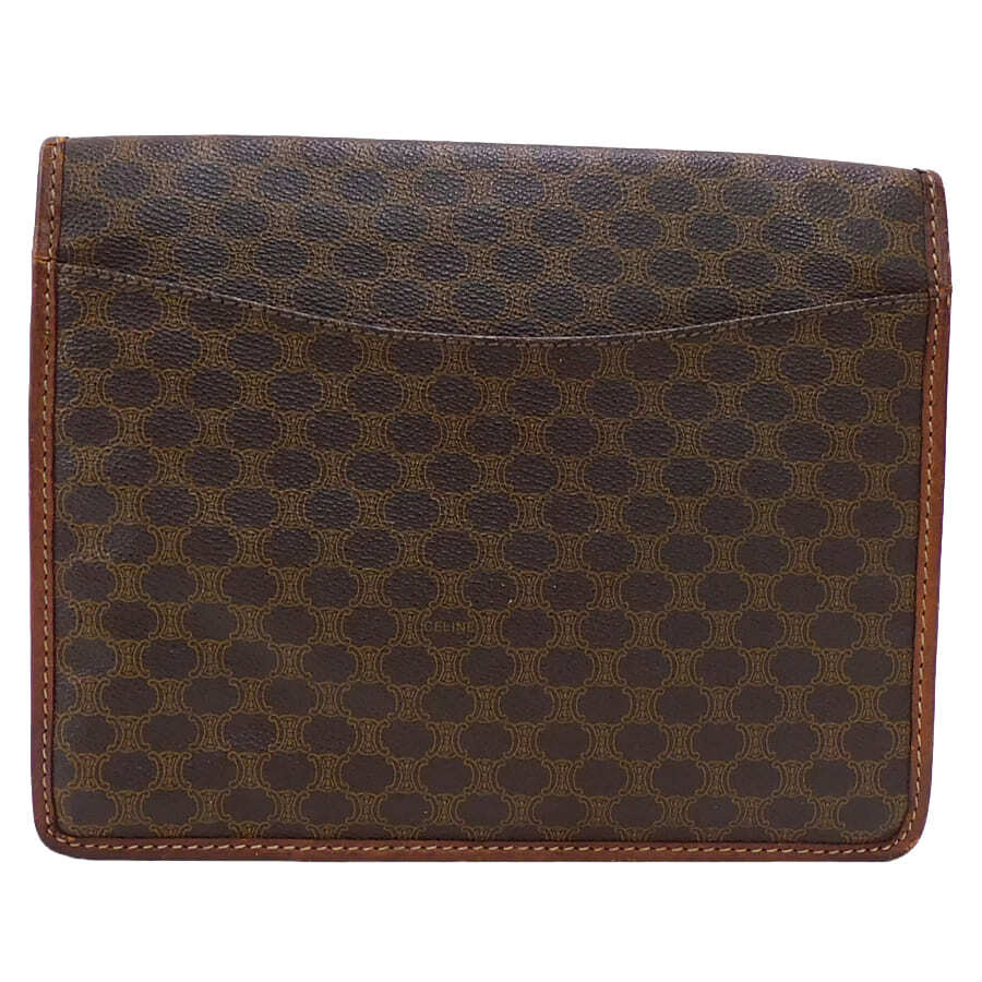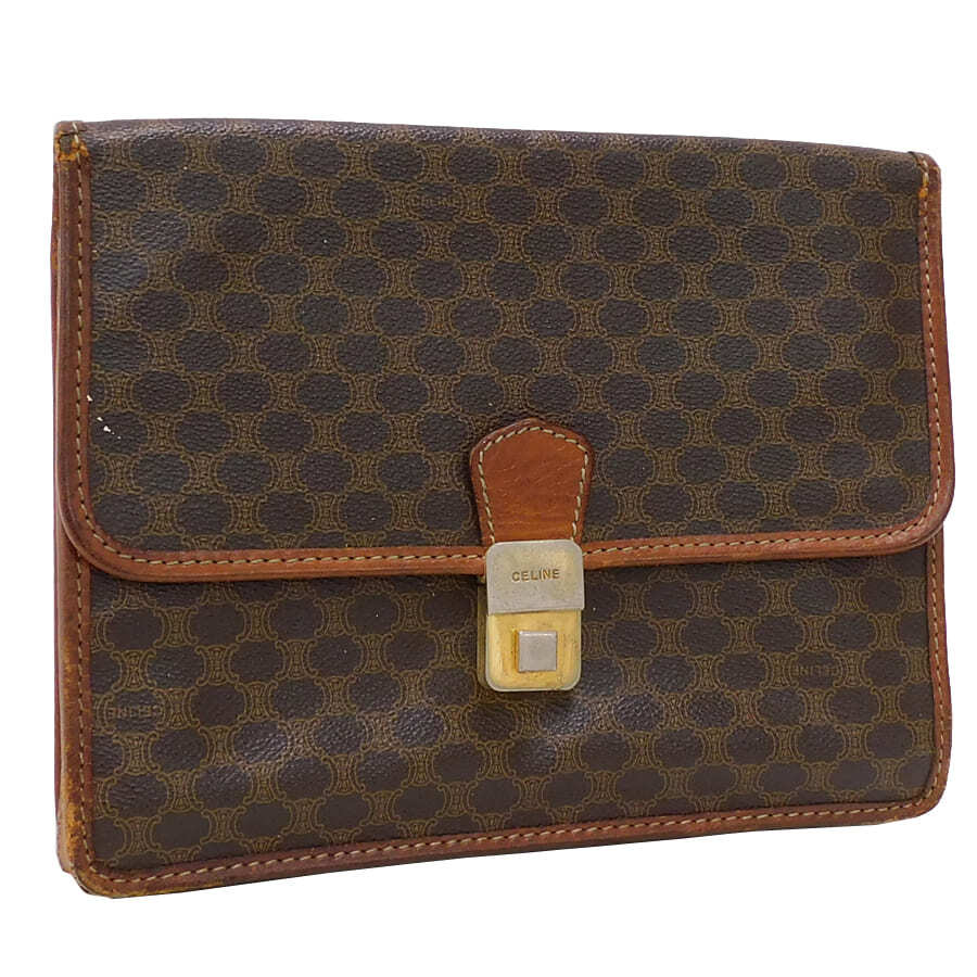 1円■セリーヌ/セカンドバッグ/マカダム/ブラウン系/レザー/ユニセックス/ビジネス/コンパクト/CELINE ■E.Bmo.tI-06[中古]
