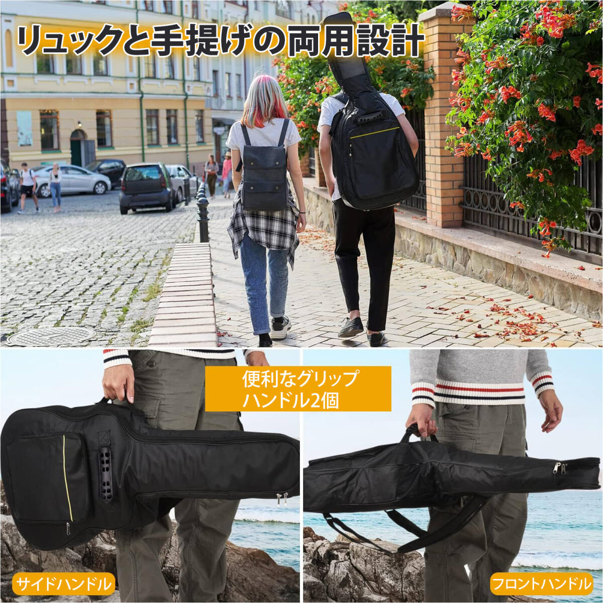 | この商品について | 【防水オックスフォード素材で耐久性抜群】:表面には防水加工を施した高品質オックスフォード布を採用。突然の雨や汚れにも強く、長期間の使用でも型崩れしにくい設計です。 【5mm厚手クッションでしっかり保護】:内部には5mmの高密度スポンジを使用。外部からの衝撃や圧力を吸収し、ベース本体の傷や破損を防ぎます。ライブや移動中も安心です。 【大容量ポケットで収納力アップ】:外側の大ポケットには、楽譜やチューナー、ケーブルなどのアクセサリーをまとめて収納可能。レッスンやリハーサルにも便利です。 【快適な持ち運び設計】:人間工学に基づいた減圧ショルダーストラップを採用。背負っても肩や背中への負担を軽減し、長時間の移動も快適。さらにソフトラバー製ハンドルで手持ちもラクラク。 【ダブルジッパー仕様でスムーズ開閉】:丈夫で滑らかな双方向ファスナーを採用。開閉時の引っかかりがなく、ストレスフリーな使用感を実現しました。 |
