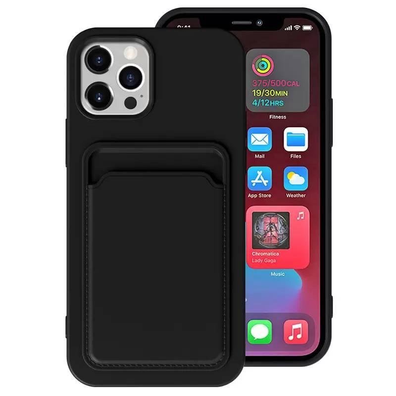 【iPhone13ProMax:ブラック】iPhoneケース アイホン 携帯 スマホ カバー シリコン TPU カード収納 背面収納 薄型 B26