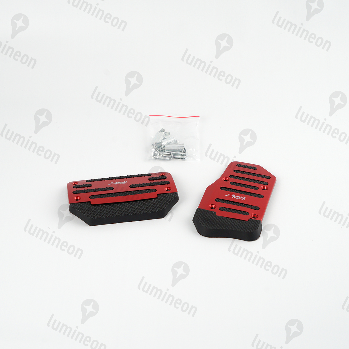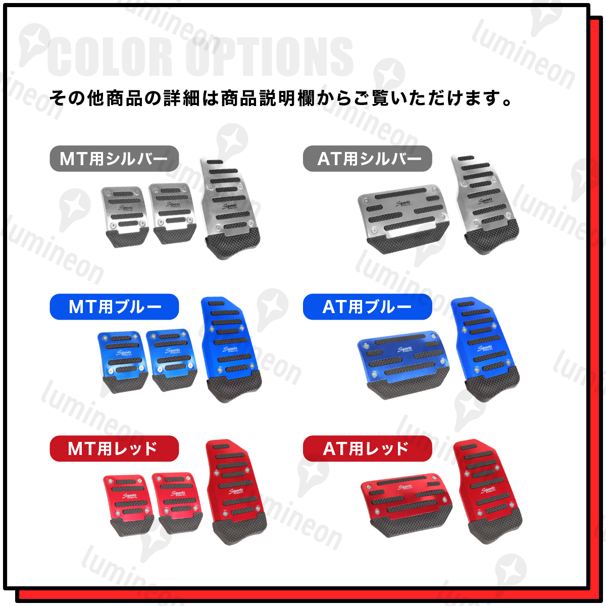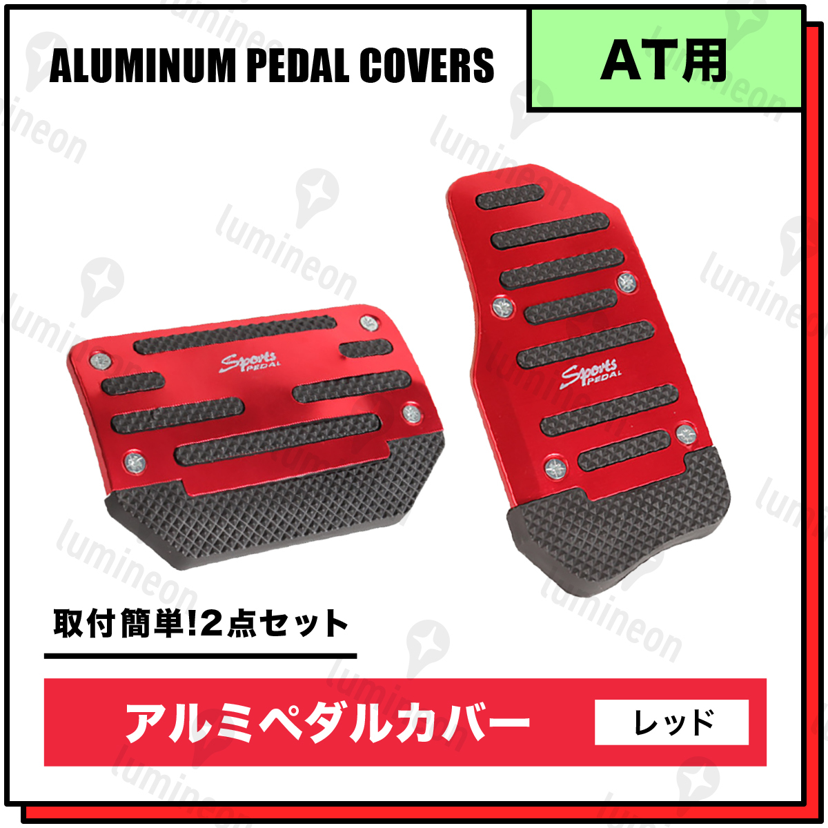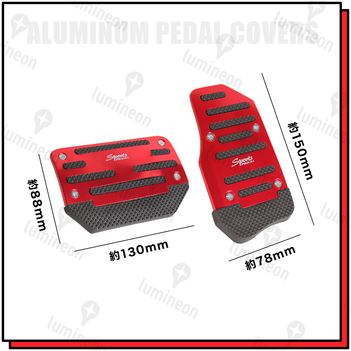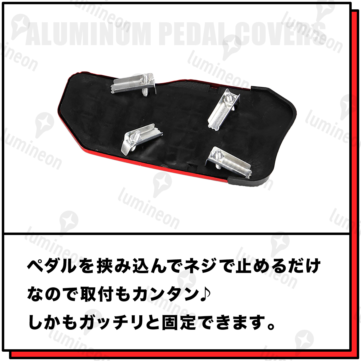 滑り止めデザインが施されたアルミペダルカバーです。 裏側はネジ止め式でしっかりと固定できます。 鮮やかなメタリックカラーで車内のアクセントにも♪ 汎用品なのでほとんどの車に取り付けできますが、