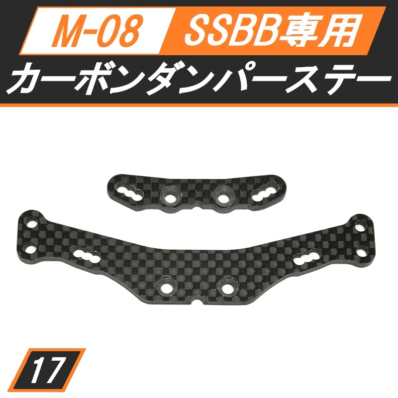 タミヤ M-08にスーパーショートビッグボア(TRF-SSBB)ダンパーを装着するためのカーボンダンパーステー(F・R)セットです。