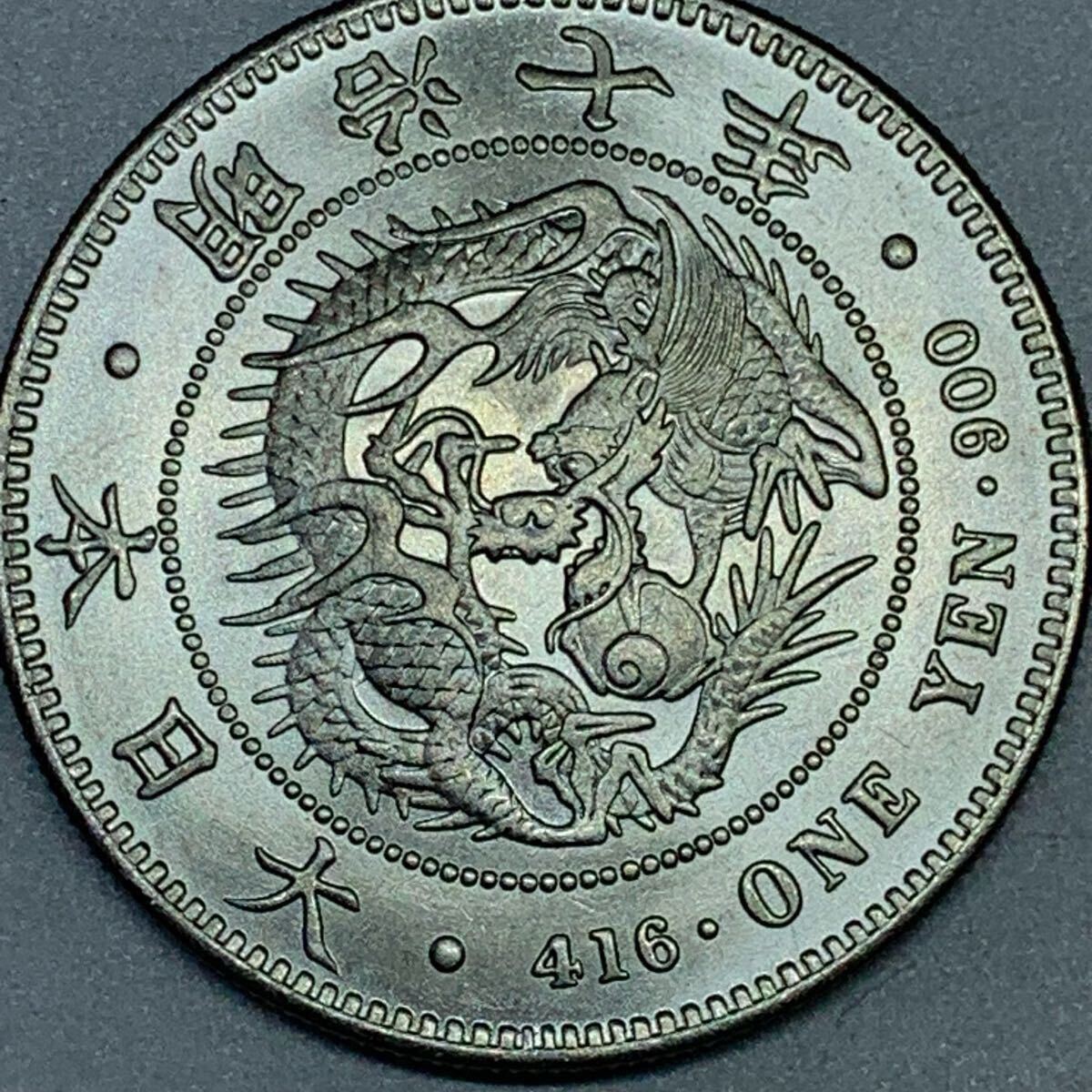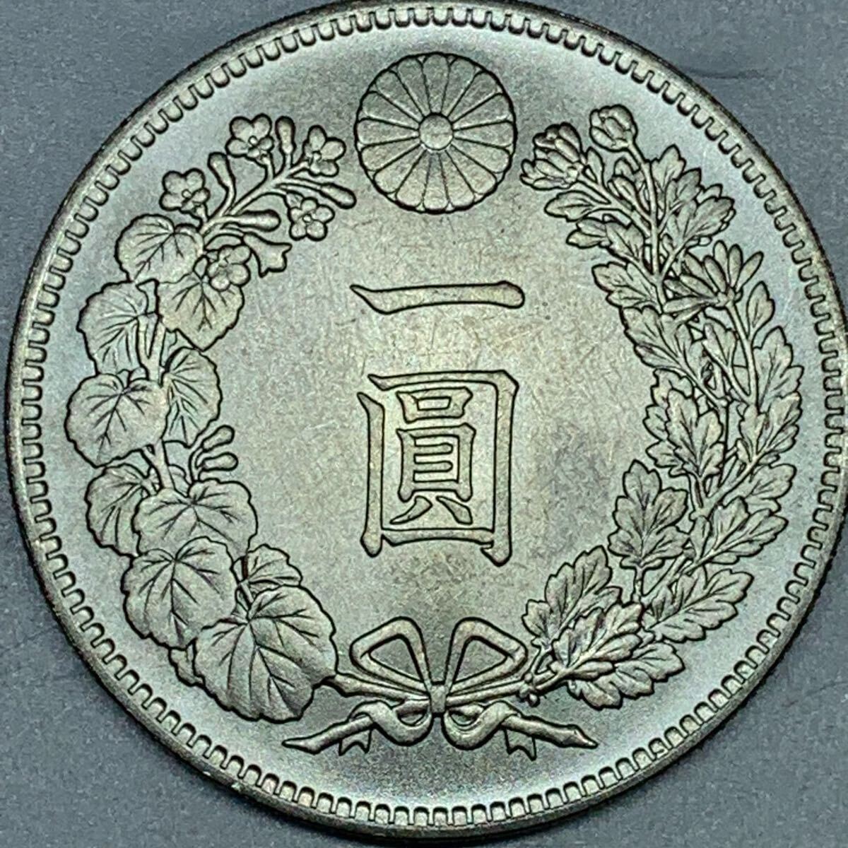 日本古銭 新1円銀貨 特年の明治七年 明治7年 貨幣 竜 菊紋 貿易銀 一円銀貨 大型銀貨 k-899