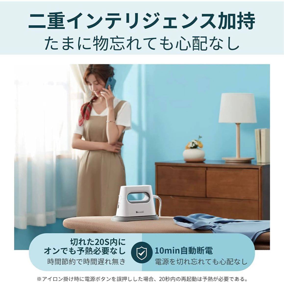急速40秒間でスピード立ち上がり、5秒間でスチーム噴出が素早くできます。119cmの超広いアイロンかけ面(市販の同類品と比べて50%以上面積が増加)に加え、3分間だけでアイロン掛けが完成し、シワにバイバイを言えます。