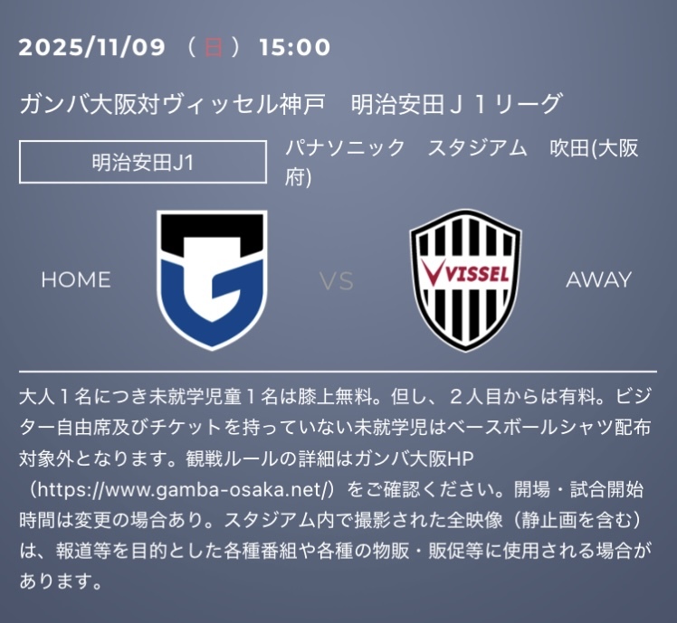 | 商品名稱 : | 【即決】11/9(日)ガンバ大阪vsヴィッセル神戸 カテ1メイン1枚 |