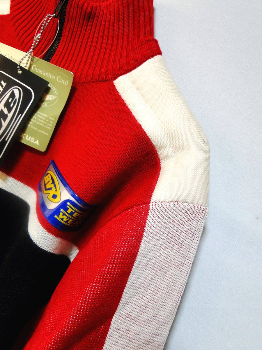 ご存じ、、、 1980-90年前後に 発表された AVX Tech Wear By AVIREX Safety Road Rides 肩パット/ エルボーパット バックに ジャヤガード織 ブランドネーム ZIP仕様の バイスクールJKT クールでレアな逸品 ■商品詳細 AVX by AVIREX NO.616413 サイズ;S /実寸: 着丈62cm、 身幅53cm 肩幅46cm 袖丈60cm (Lサイズって感じです。) 素材; アクリリ70% ウール30% (ジャヤガード織) カラー;RED./BLACK/WHITE 新品/送料込/ 目立つ日焼け、傷、 汚れなどは御座いません。 Deadstock品です。 デッドストック商品は 新品・未使用品です.、 経年によりフラッシャーが 取れているものの、 畳みシワのあるもの、 また,発送時には、 気付かなかった 経年に因るホコリ汚れ等が ある場合もございますので、 予めご了承ください。 ご理解頂きまして 十分に検討の上、 決断をお待ち申し上げます。 | ||||