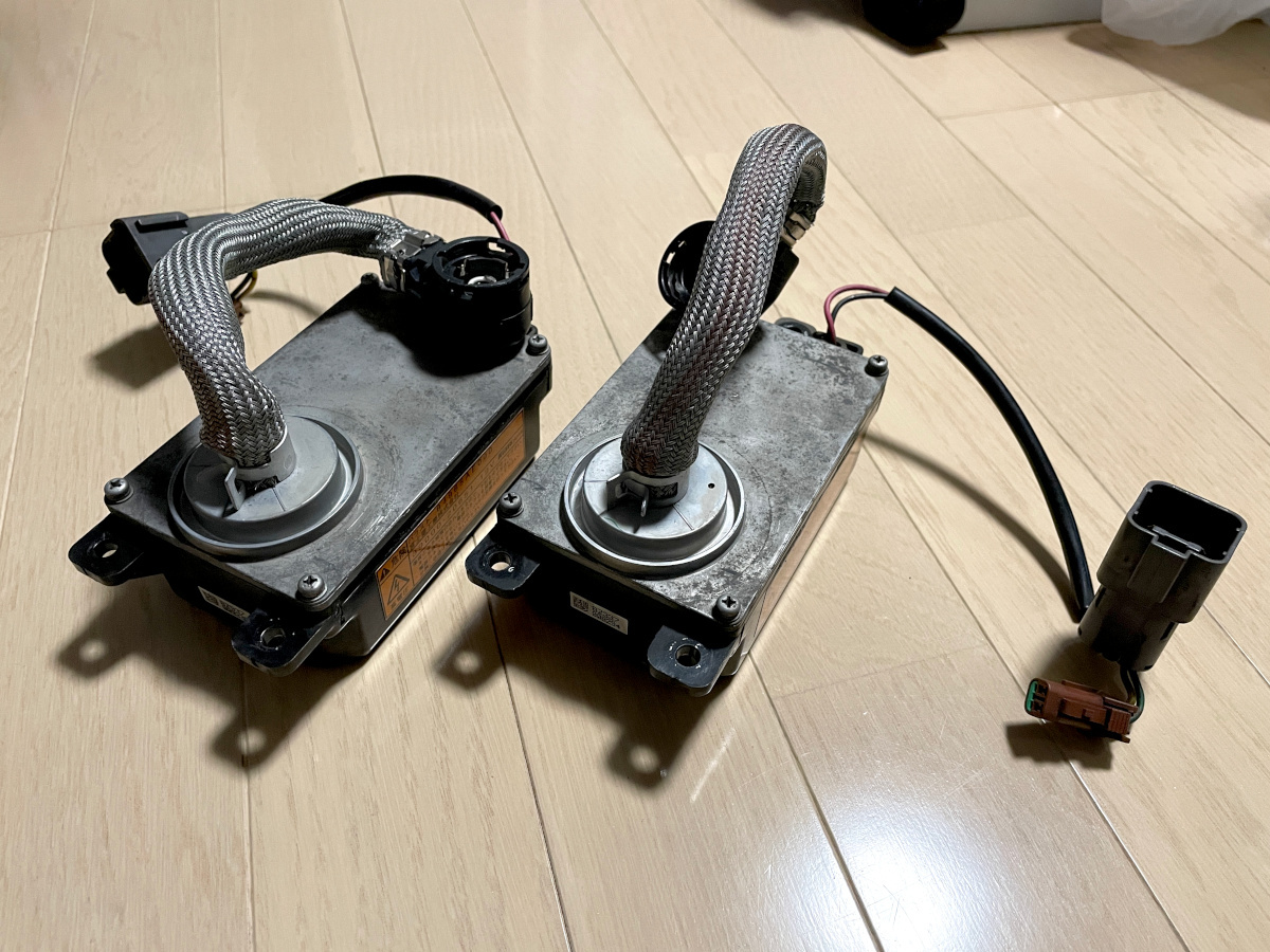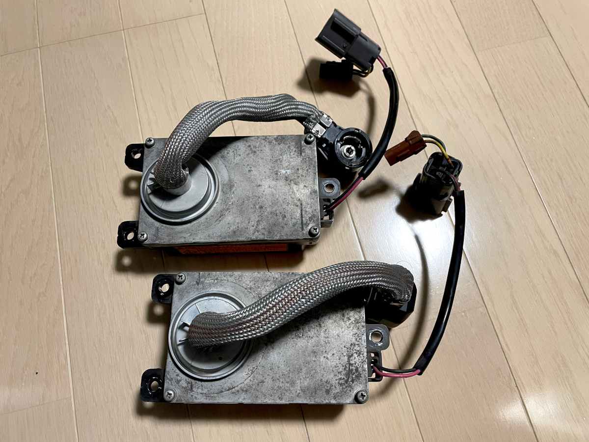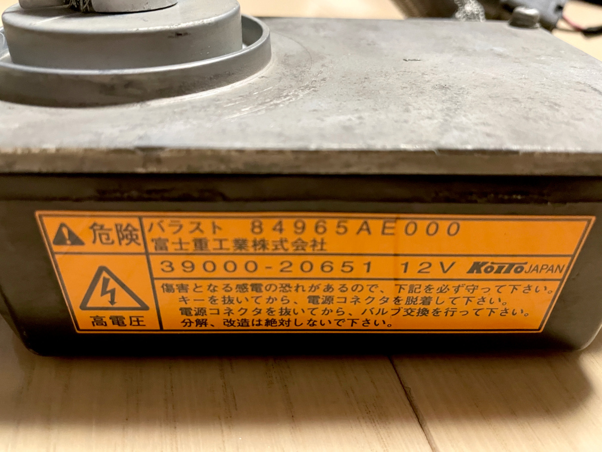 ■商品情報■ スバル レガシィ 純正 HID バラスト「84965AE000」(ディスチャージライト)(左右セット)(点灯確認済)(中古) メーカー:スバル (SUBARU) 商品名:バラスト 型番:84965AE000 適応:レガシィ BH/BE A~C型 HIDヘッドライト装着車 (コネクタ加工により他車流用可能) 対応バーナー:D2R ■商品の状態■ ○ 中古 ○ 自車で使用(BH5 GT-B A型車両) ※ 別出品のハイワッテージバラストに換装前まで使用しておりました ○ 点灯テスト済み (後述) ○ 左右セット [仕様] ○ 純正バラスト (未加工、ノーマル) (テスト内容) ○ 突入電流は10A超えているようで10Aの安定化電源では 点灯できませんでした(昇圧できずに点滅してしまう) ○ 自家用車にバッ直して点灯テストを実施 ○ 安定時の電流は【3.54A/3.69A】でした ※ クランプメータで計測 ■配達について■ ○ 「宅急便(EAZY) 80サイズ」で発送予定 ■コメント■ ・ バラストは大きめです ・ 小糸製のバラストなので安定度があります ・ 別出品で「ハイワッテージ化バラスト」も出品中です https://page.auctions.yahoo.co.jp/jp/auction/n1176796033 ■▽■▽■▽■ ・中古品ですので動作確認は取り外した時点です ・ノークレーム/ノーリターン(NC/NR)でお願いたします (先日、本文記載してにもかかわらず難癖つけられて評価下げられました) ・不明点があれば質問をお願い致します ・海外発送はいたしません。 ・業者や代行はお断りいたします。(←発送における注文が多い) ・評価が95%未満の方はお断りいたします。(←トラブルが多すぎ) ・早期終了・価格交渉・直接取引の持ちかけがあった場合はBLします。(←高確率でトラブルが多い) ・誤入札などの入札取り消しはお断りいたします。 上記内容をよくご確認・ご納得の上、責任をもってご入札をお願い致します。 >