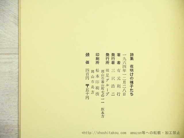 | 商品名稱 : | 詩集 夜明けの種子たち/有元利行/裸足グループ(岡山)*35553 |