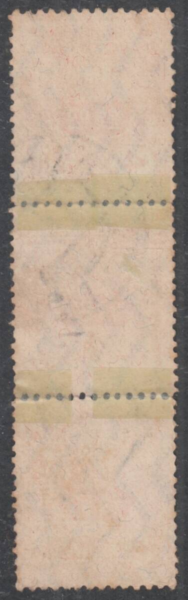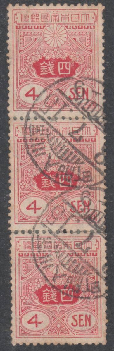 (R142)旧大毛4銭再接縦3連 櫛型印