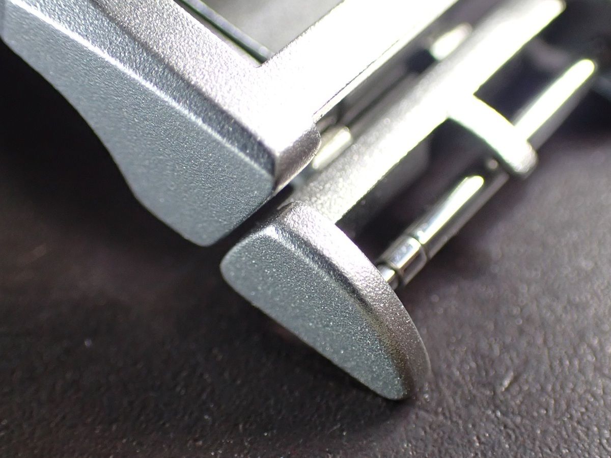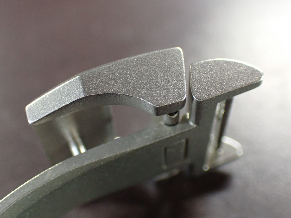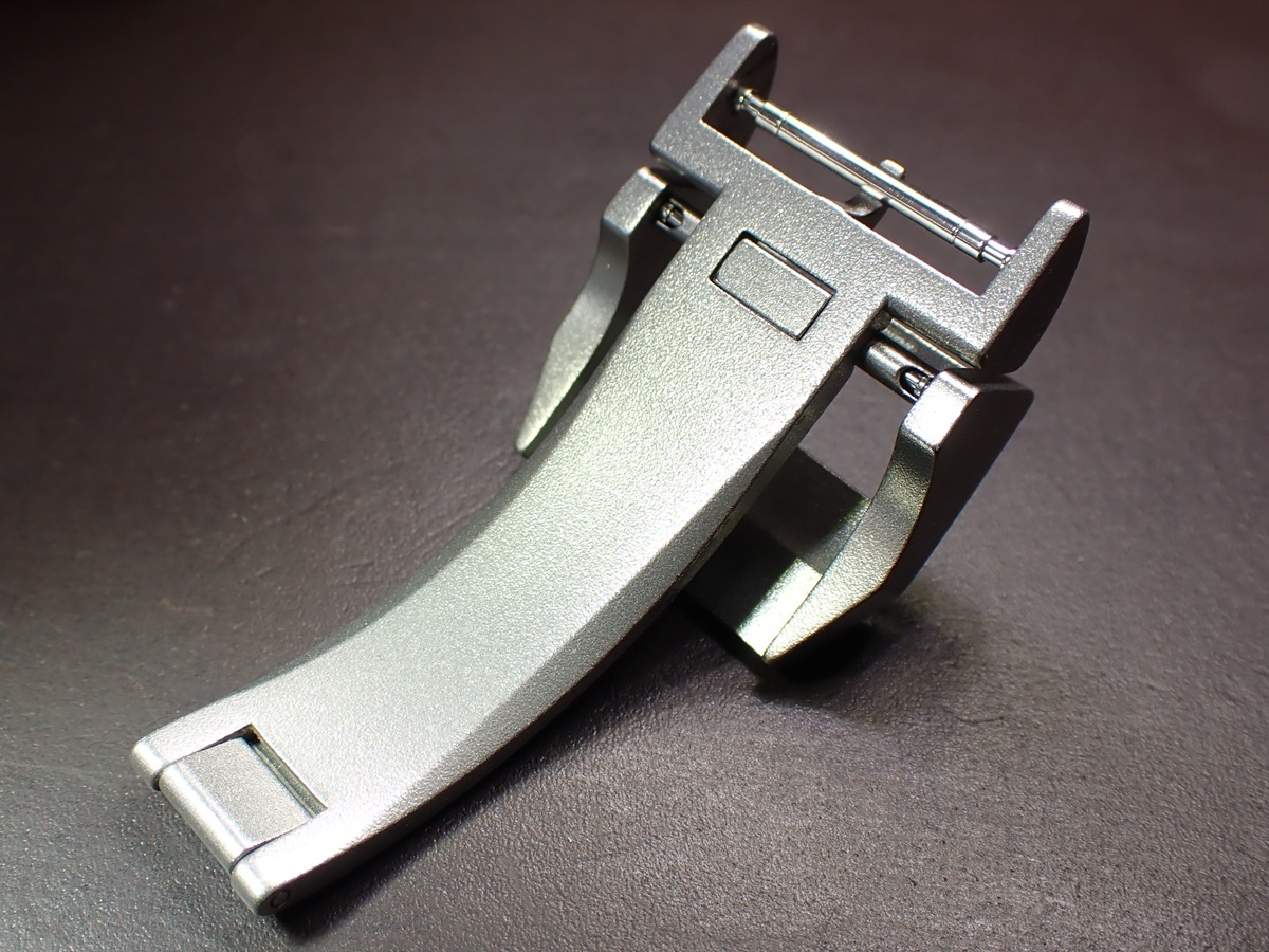 IWC 3880 ( セラミック ) や 5010 ( チタン ) パイロットウォッチ用の物で、表面がざらついた仕上げの為か、普通の SS 製バックルに