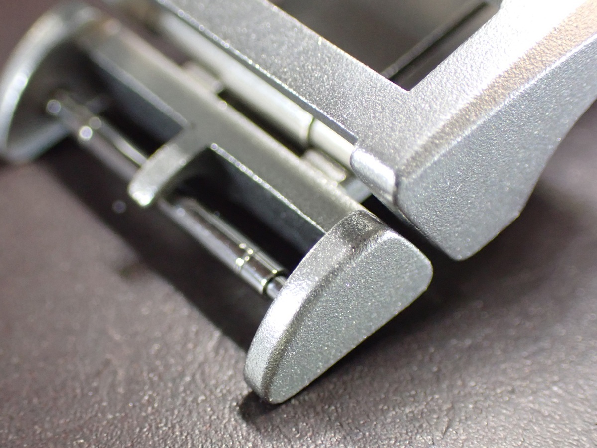 こちらのバックルは使用に伴い自然についてしまうスレ傷などは御座いますが、開け閉めの硬さにヘタリ感は感じられず、まだまだ