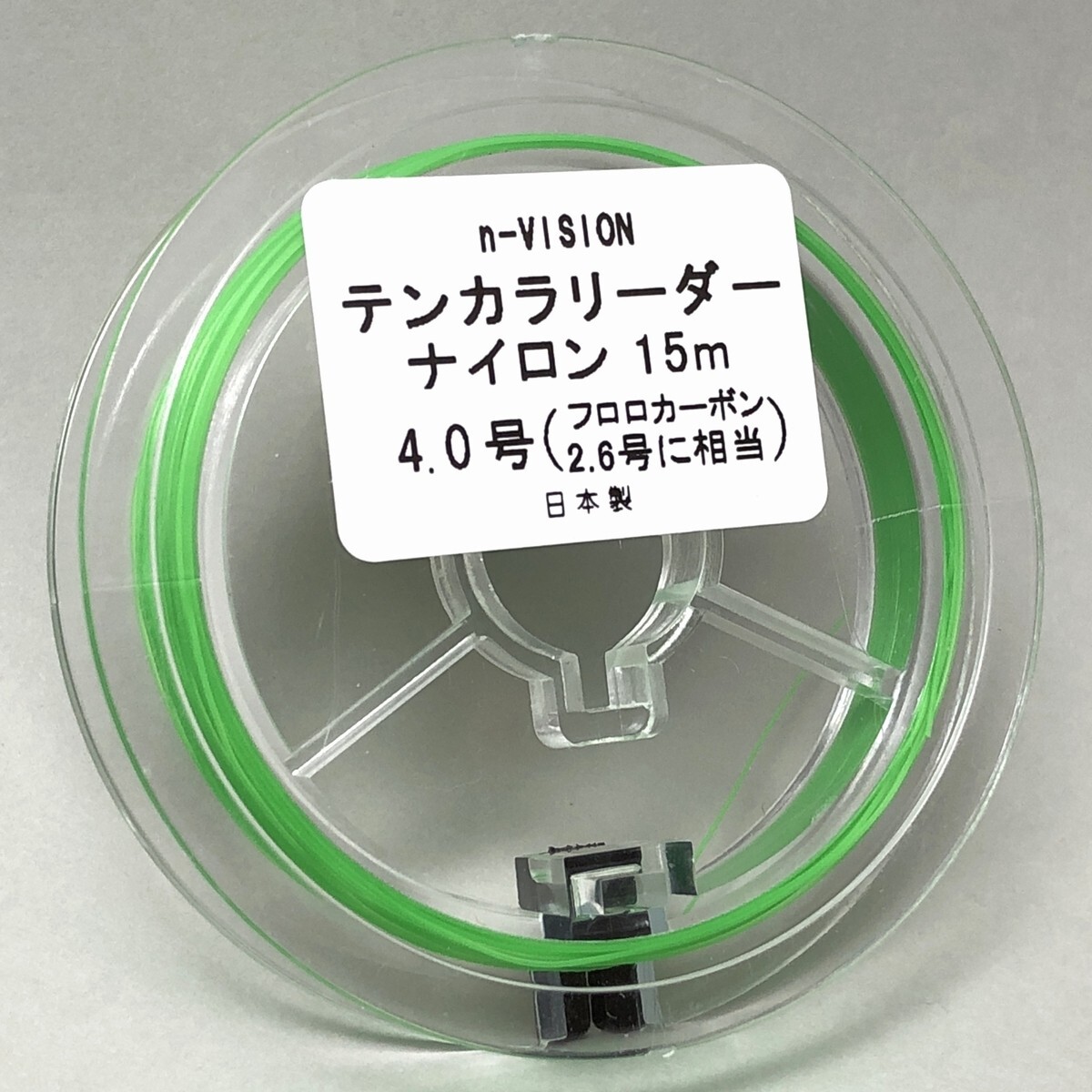 テンカラのレベルライン、ハリスに加え、よりスムーズなキャストを可能にするテンカラリーダーの3点をセットにしました。 いずれもn-VISIONが単体で販売している商品です。 このテンカラリーダーを使用したリーダーシステムは、一般的なテンカラレベルラインの弱点を解消したラインシステムです。 レベルラインの仕掛では、ラインとハリスの段差が大きいためにコントロールしにくく、ラインが水面に突っ込んだり、毛鉤が水面を強く叩いたりすることがあります。それがこのリーダーシステムを使えば、ラインからハリスまで緩やかな段差が付いていることで無駄なくパワーが伝達されるため、自由自在にキャスティングをコントロールできます。毛鉤が暴れて狙いが定まりにくいということもありません。 もちろん初心者でも理想的なキャスティングを行いやすく、釣果にも大きく影響します。 ※ナイロンはフロロより比重が軽いため、重さを重視するテンカラではフロロより太いサイズが適切なサイズになります ●テンカラレベルライン 業師(ワザシ) ナイロン 6.0号 40m 非常にしなやかで視認性の高いレベルラインです。竿の長さに合わせて切って使います。6.0号はフロロカーボンの3.8号に相当する重さで、初心者にも使いやすい太さです。投げやすくコントロールしやすいラインです。 ●テンカラリーダー ナイロン 4.0号 15m レベルラインとハリスの間に結ぶことで、非常にスムーズなキャスティングが可能となる、全く新しい種類のテンカララインです。乱反射しにくいグリーンなので魚に警戒心を与えません。ナイロン4.0号はフロロカーボンの2.6号に相当する重さです。 ●テンカラハリス 隠密 フロロカーボン 0.8号 40m 特殊コーティングが施されているしなやかで強いハリス。標準的な0.8号。初心者には細く感じるかもしれませんが慣れれば結べるようになります。 ハリスは魚に見えないようにほぼ無色透明になっています。 なお、レベルラインとリーダーとの結び方はサージェンスノットもしくは電車結びがおすすめです。