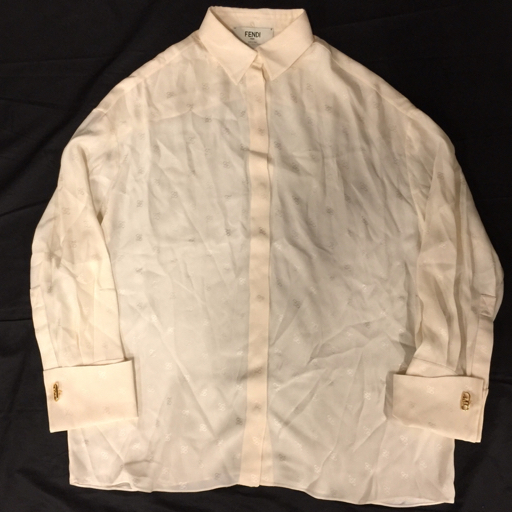 | フェンディ FS7478 AGUB サイズ 38 長袖 総柄 シャツ シルク 絹 100% レディース キナリ系 トップス アパレル FENDI |