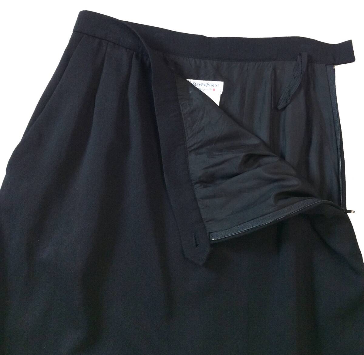YVES SAINT LAURENT イヴサンローラン セットアップ ノーカラー ジャケット スーツ スカート 黒 ブラック L 11A3 / 42 レディース