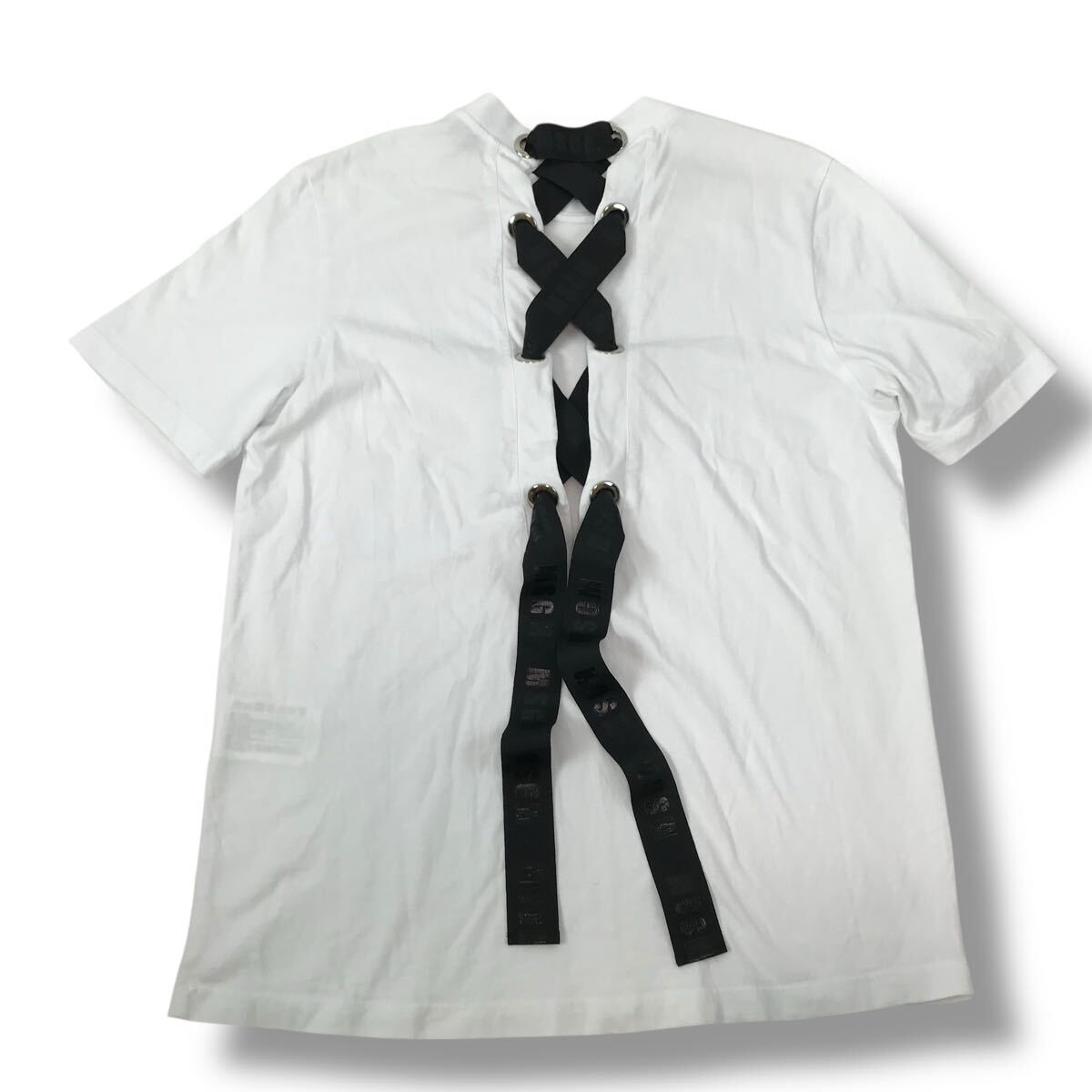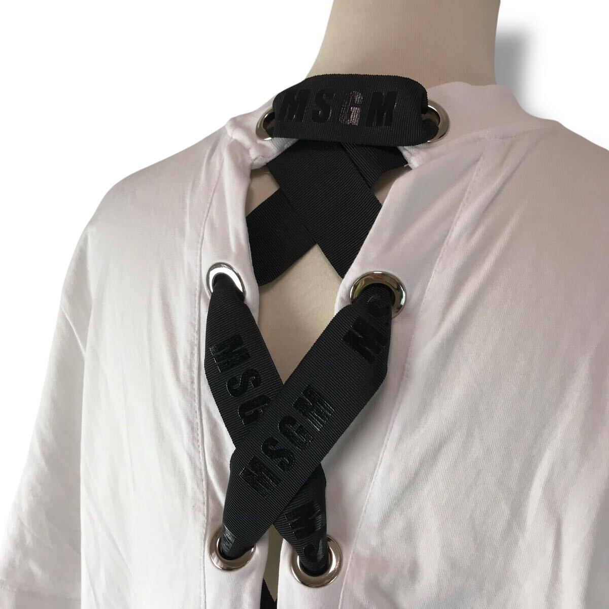 b118 MSGM エムエスジーエム ロゴ 半袖 Tシャツ バック レースアップ リボン ホワイト カットソー トップス 正規品 XS イタリア製