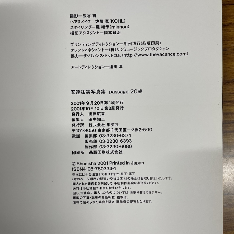 写真集 安達祐実 20歳 写真集「PASSAGE 20歳」帯付き /識別番号②