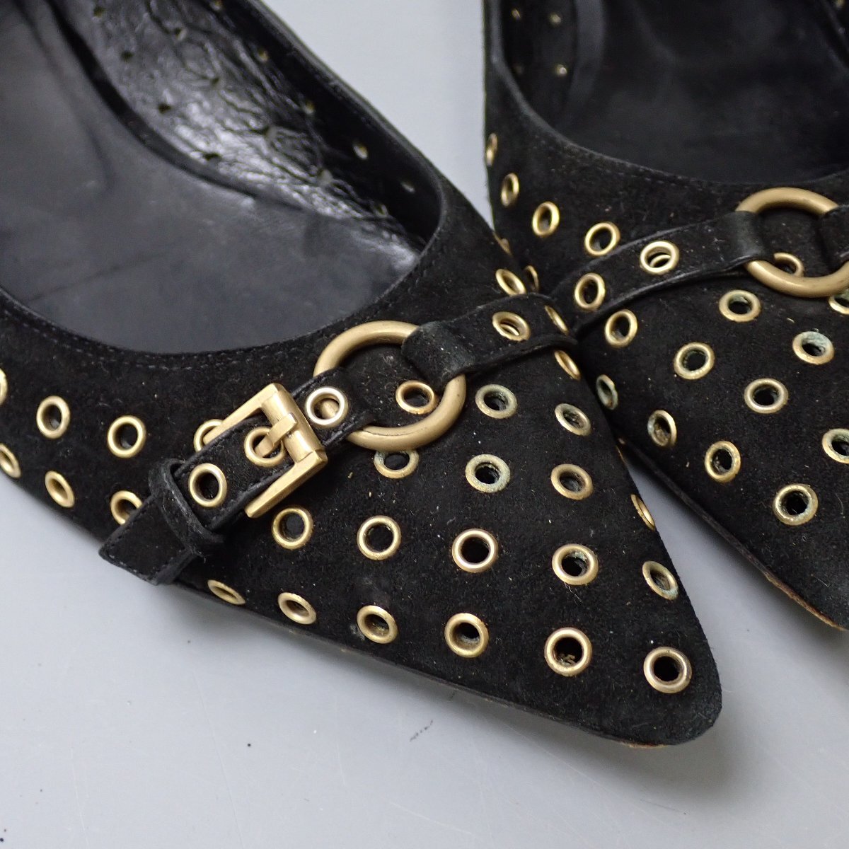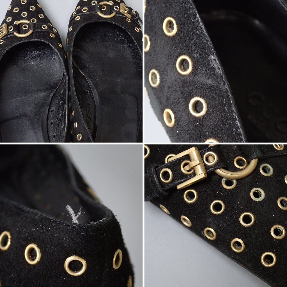 ★GUCCI/グッチ アイレット フラットパンプス 36C/22cm相当/ブラック/スエード/ポインテッドトゥ/シューズ&2167600034