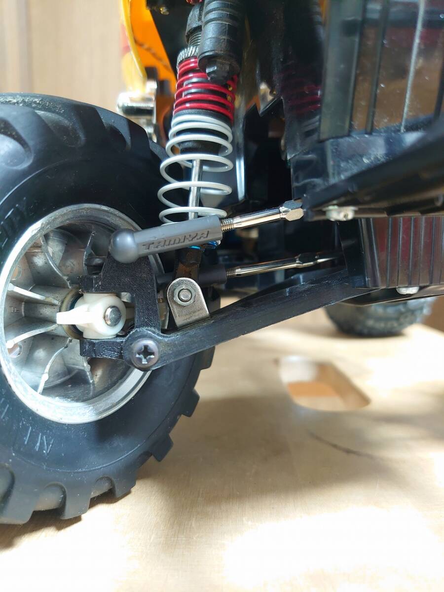 ☆破損時の補修アーム出品始めました タミヤ ミッドナイトパンプキン、ランチボックス用フロントアームキットです。 商品は、ターンバックルマウント1個、アーム1セット、Cハブ1セット(アーム類の穴は3mmで穴加工済み) 一台分です ☆ノーマル車両に大きな加工無く、取り付け出来るように制作しました。 (カスタム古董商品,有可能客製化、修改、換過零件,請下標錢注意。 車への取り付けは、各自の判断でお願いします。) ☆商品は、樹脂部品のみです。 取り付けネジ等は、購入者様でご用意願います。 取り付け参考部品 SP-592 5MMピロボール OP-601 ローフリクション5mmアジャスター アッパーアーム等NO 楽しい工作シリーズ(パーツ) No.1713mmネジシャフトセット を買って、カットして長さを合わせるとよいと思います アッパーアーム全長 80mmアジャスター含む 2本 ステアリング全長 100mmアジャスター含む 1本 80mmアジャスター含む 1本 アップライト部ネジ M3ネジ 25MM 4本 M3ナット回り止め付き 4個 これでとりあえずは、取り付けできると思います 強度、耐久性はフルノーマル(ノーマルモーター)でテスト済み。 公園走行、常識範囲での走行にも耐えてます。 (全開で金属の柱に、アームが直接あたると、さすがに折れます。) 説明不足もあるかと思いますので、気になる点は質問ください。 ★注意★ 〇お送りするのは物は、掲載画像に「写真の物、写真の商品」と記名してます。 〇組付け、調整、バリ取り作業がありますので、 作業に自信がある方にオススメしてます。 〇真夏の車内では、さすがに熱で歪んでしまいます。 (耐熱温度は52℃です) 〇製品の強度は増して作ってますが、 ネジの締めすぎなどによる穴ナメに気を付けてください。 〇自作品の為、お店の品のように高品質ではありませんが。 それでも宜しければご購入検討ください。 多少の誤差、バリなどある場合がありますので ご理解の上 ご購入よろしくお願いします。 >