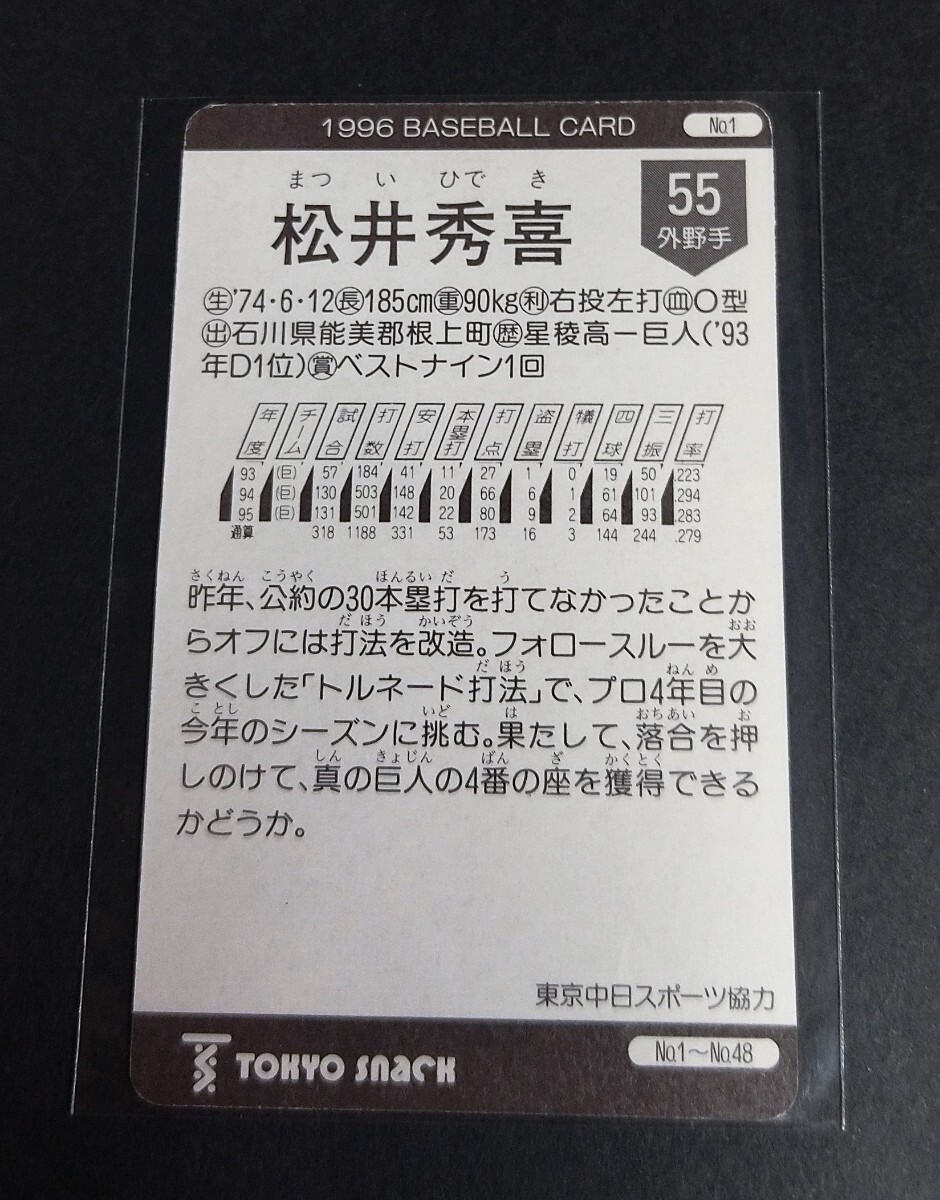 | 商品名稱 : | 1996年カルビー 松井秀喜(巨人)No,1。 HIDEKI MATSUI |