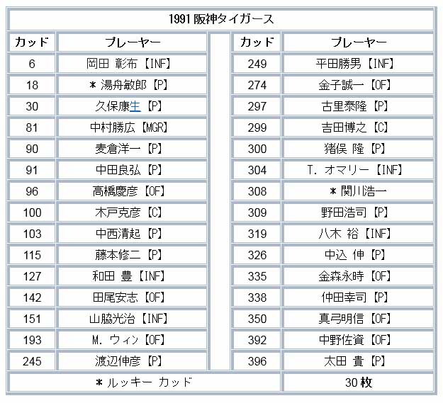 | 商品名稱 : | 即決! 1991 BBM 阪神タイガース 30 カードセット |