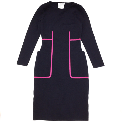 | クリスチャンディオール ブティック サイズ 38 31H2801120 長袖 ニット ワンピース レディース ネイビー×ピンク系 |