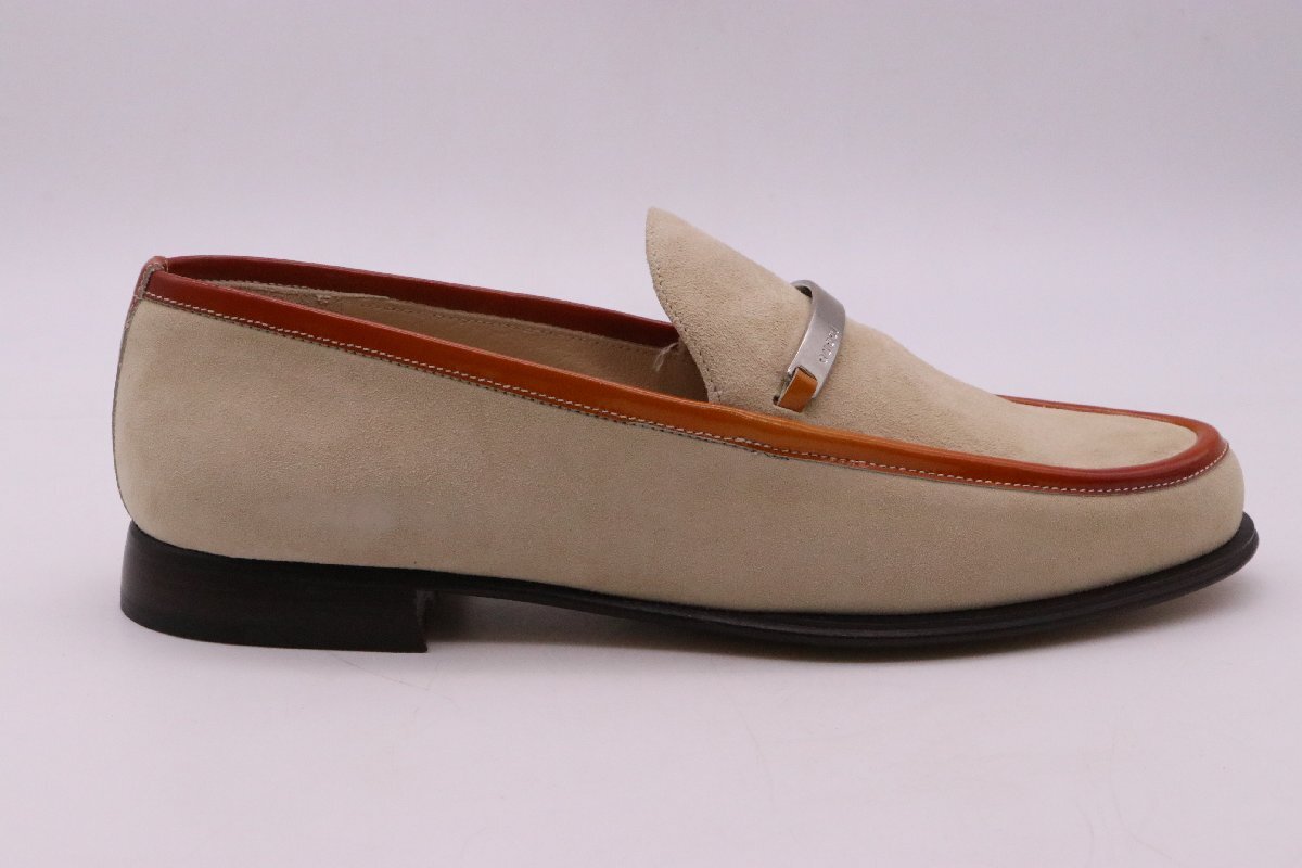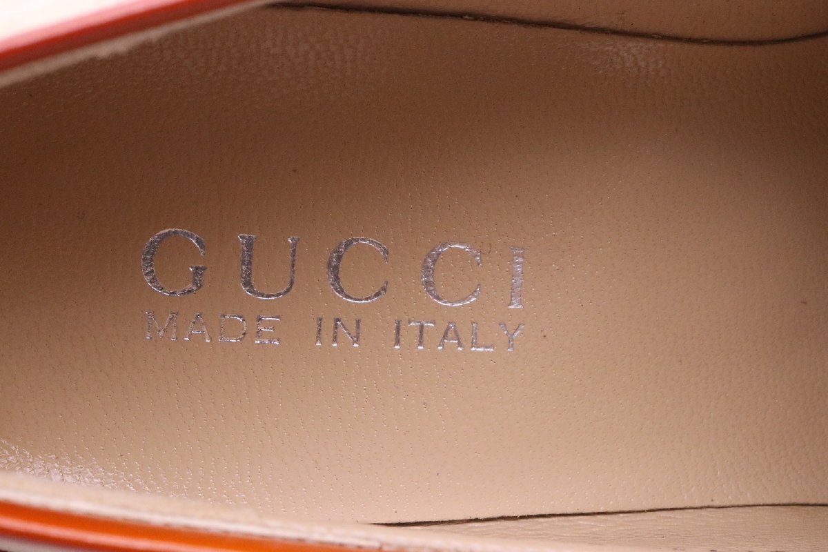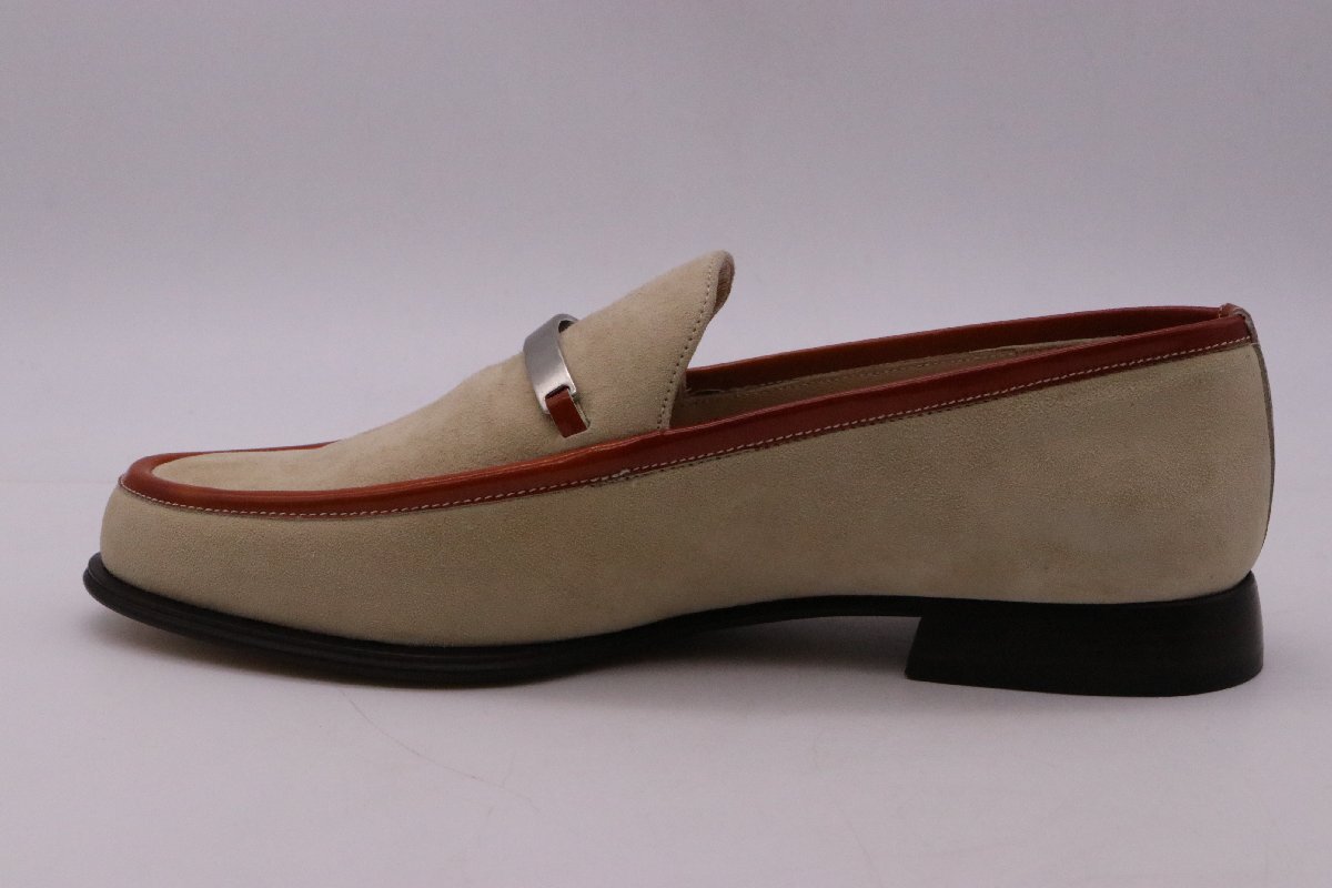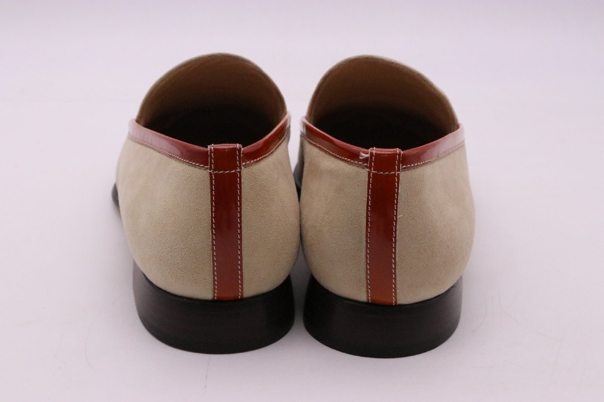 | GUCCI グッチ スエード レザー ローファー ロゴプレート付 ベージュ 茶 サイズ34 1/2 レディース 箱付き | ||