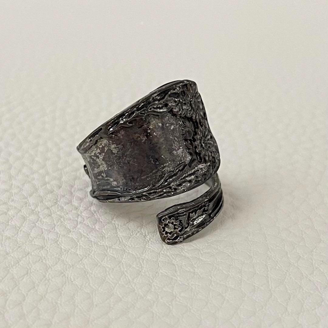 ・こちらのリングはアンティーク古董商品,有可能客製化、修改、換過零件,請下標錢注意。 加工を施しております。 ・「スプーンリング」とは、古い銀のスプーンの柄を曲げて作られた、クラフトリングです♪ ・古い洋食器のような草花や曲線モチーフの彫刻が美しく、男女問わず使えるユニセックスデザインのリングです◎ ・スプーンをそのまま曲げたようなユニークな形状立体的な巻き込みフォルムで指にくるりと巻きつくようなフィット感とアート性が魅力です。 ・落ち着いた光沢の中に、ヴィンテージ特有の深みを演出。 ◆サイズ ・約16号〜約20号(FREEサイズ、調整可能) ・重さ:約8g ◆カラー ・シルバー ◆素材 ・silver925(コーティング、アンティーク古董商品,有可能客製化、修改、換過零件,請下標錢注意。 加工) ・合金 ※スプーンによって少し形状が変わる場合がございます。※素材は入荷時のものを記載しております。鑑定書等は付属しておりません。