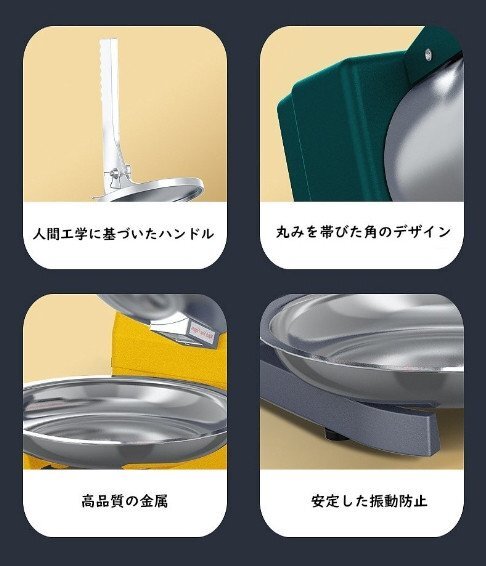 この氷の粉砕機は肘に適切なサイズのアイスキューブを置く(アイスキューブはオーバークラッシュしてはいけません。一枚の氷の大きさは肘に収まって、肘から20mm以下にぶら下げてください)。電気氷粉砕機は、アルミニウム合金を主材料として用いており、表面は特殊な工程で処理されます。カッターは高品質のステンレス鋼製で、着用が容易ではありません。この機械はまた、簡単な操作、安全性、耐久性のために氷を粉砕する美しい外観と高効率の利点を持っています。