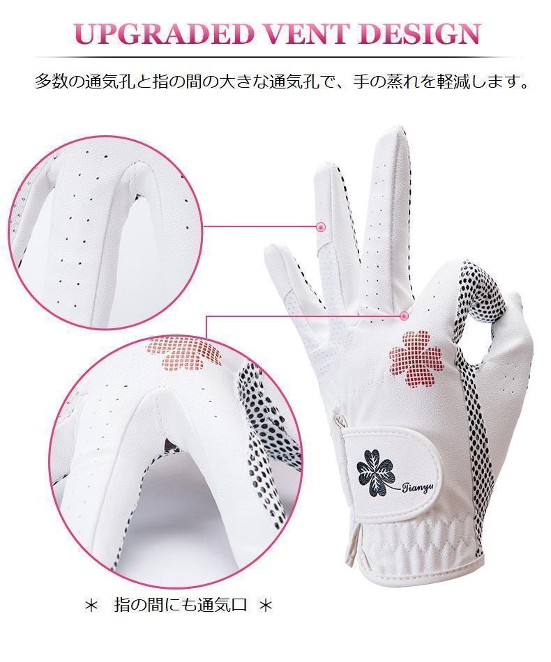 レディース ゴルフグローブ 両手 ゴルフ手袋 Black-White 18サイズ