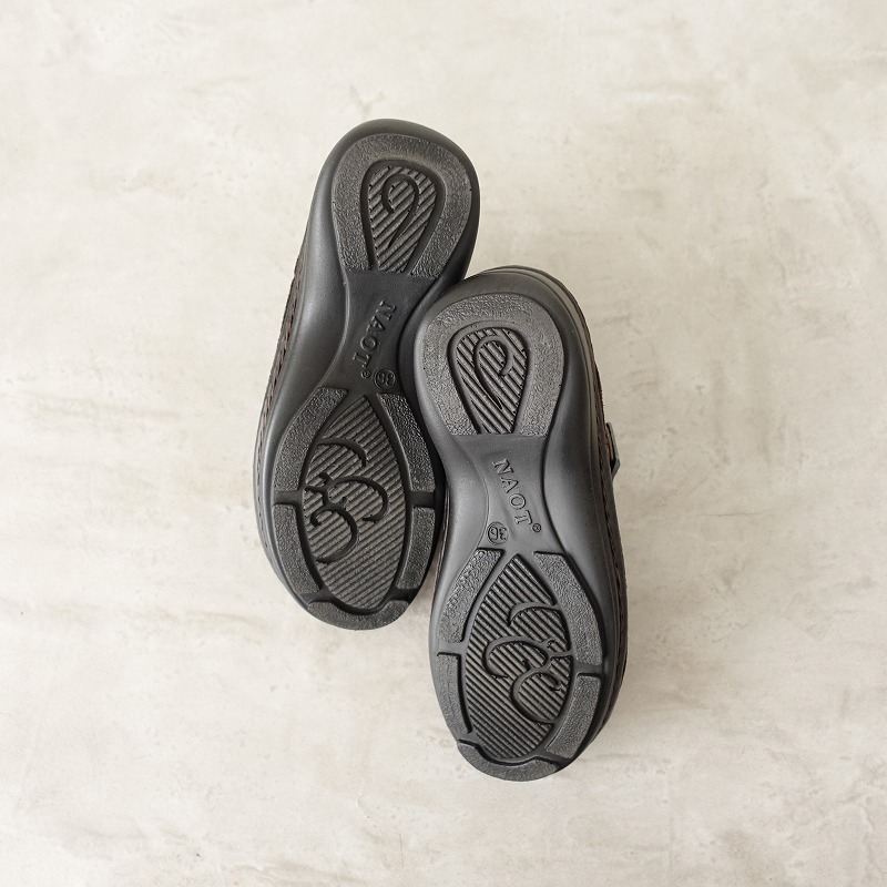 | NAOTのIRIS サボサンダルです。カラーはダークブラウンで素材はレザー、5段階に調節可能なストラップは踵に回して履くことも出来るデザインで、インソールはクッション性がございます。定価(メーカー希望小売価格)26,400円の商品です。 |