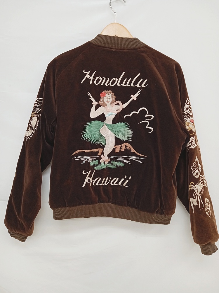 ●古5129 テーラー東洋 TAILOR TOYO リバーシブル スカジャン ハワイ フラガール 別珍 Mサイズ タグなし【67】 商品説明 注意事項 発送詳細 支払方法 当オークションをご覧いただきありがとうございます。 下記項目を必ずお読みの上、ご検討、ご入札下さい。 ご入札を頂いた時点で、ご了承頂いたものとしてお取引させて頂きますので、 何卒宜しくお願い致します。 <ご入札の前に> お支払い方法は「かんたん決済」のみ、 発送方法は「ヤマト運輸 宅急便」のみとさせて頂きます。当方即決はお受けしておりません。 同梱希望は『まとめて取引』で依頼された場合のみお受けすることに変更しました。ご注意ください。下記の発送詳細にて送料をご確認ください。 ご了承頂ける方のみご入札頂きますようお願い致します。【サイズ】 Mサイズ 着丈 約55cm 身幅 約55cm ゆき丈 約81cm ※平置き採寸です。素人の採寸の為、多少の誤差はご了承願います。【付属品】 なし【状態】 ★商品の状態評価:C 使用感があり、スレや汚れ等のダメージがあります。 袖色褪せ、汚れがあります。 リブ毛玉があります。 ※商品説明や写真で載せきれない細かな汚れやキズ、実際に着用しなければ分からない不具合等がある場合がございます。 ※古着独特の匂いを感じられる場合がございます。 ※撮影時の光の当たり具合により、写真と実際の色目が異なる場合がございます。 ※当方は専門店ではございません。出品している商品は買取中古品の為、詳しい事や保証等に関しましては、当方では分かりかねます。 ※「早期終了あり」となっていますが、出品する際のシステム上「なし」に変更出来ない状態になっておりまして、早期終了はお断りさせて頂いております。紛らわしい表記で申し訳ございません。 ※写真にあるものが全てです。 ご了承の上、ご入札下さいますようお願い致します。 あくまでこちらの目で見ての状態判断になりますので、中古にご理解のない方、神経質な方はご入札をお控え下さい。 詳しくは商品写真をご覧ください。 <商品の状態評価基準> ★本体などの外観について S=新品、未使用、未開封 また、新品の状態に近いもの。 A=使用感が少なく程度良好、汚れやダメージは無い、もしくは目立たないもの。 B=使用感はあるが、汚れやダメージは気にならない程度。 C=使用感があり、多少の汚れやダメージがある。 D=使用感があり、汚れやダメージが目立つがまだ使用できるもの。 E=使用感がかなりあり、汚れやダメージが目立つ。破損箇所なども。ジャンク故障品、問題商品、可能無法修理,請注意 =電源が全く入らない、動作しないなどほぼ完全に壊れているもの。 商品の状態評価は、当方の主観での、動作・外観など全体的に見て判断した評価になります。 また、入札者様の見方と異なる場合があります事をご了承下さい。 ★ご入札の前に下記「注意事項」欄も必ずお読み下さい!★ 長文になりますが、お取引に際し大切な項目になりますので、 お手数ですが必ずお読みの上ご入札下さいますようお願い致します。