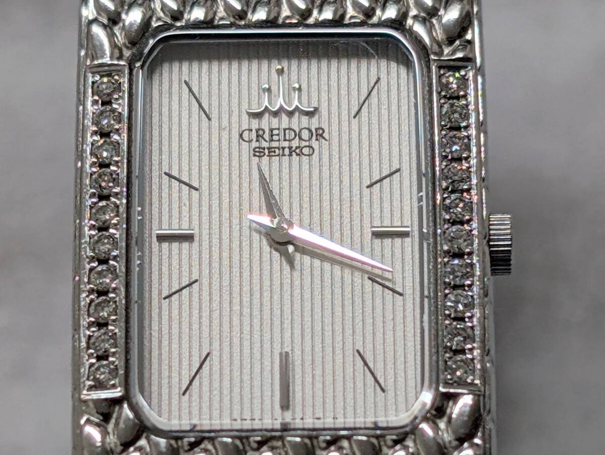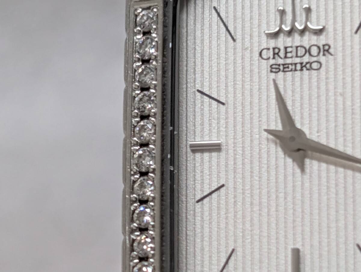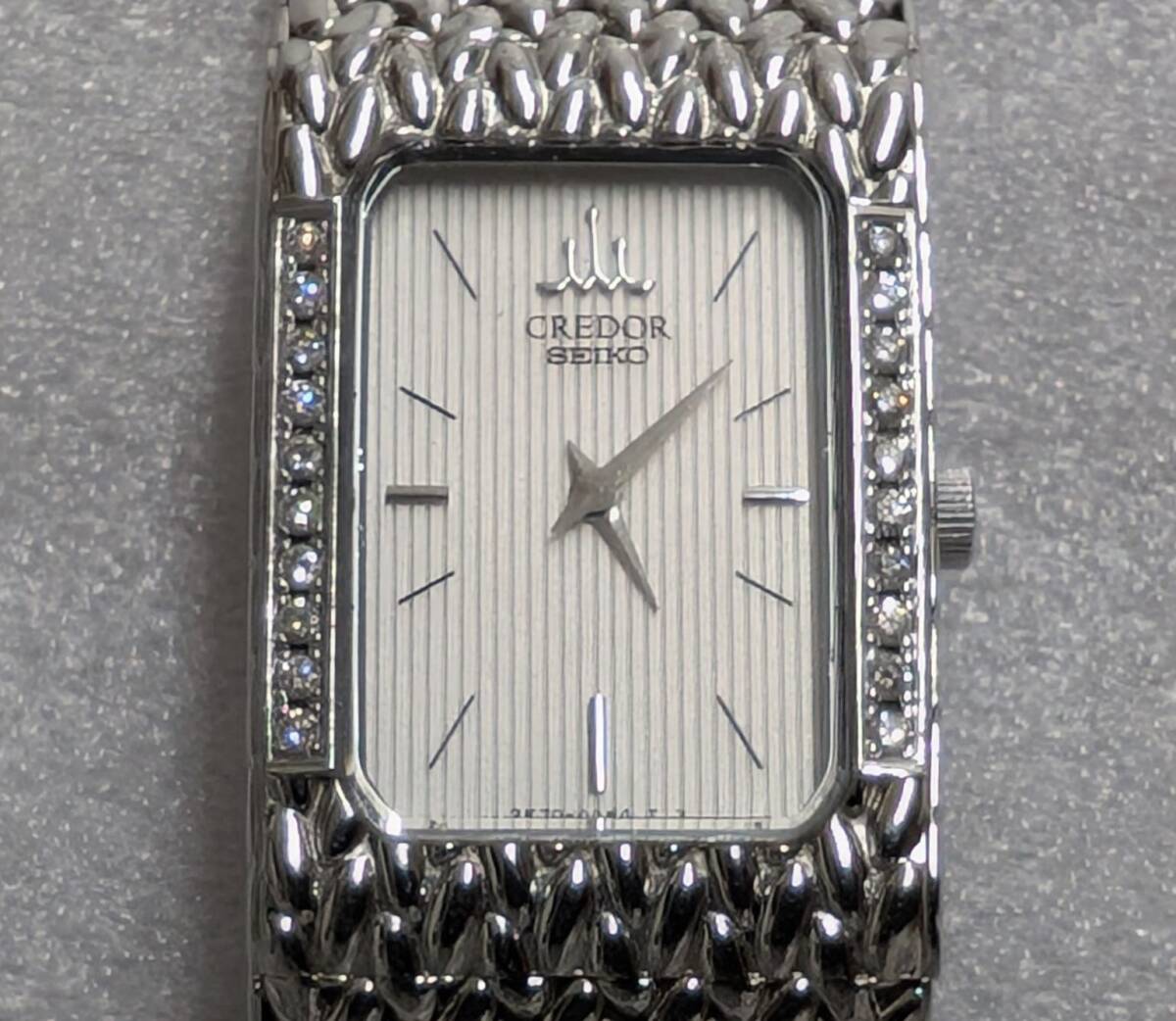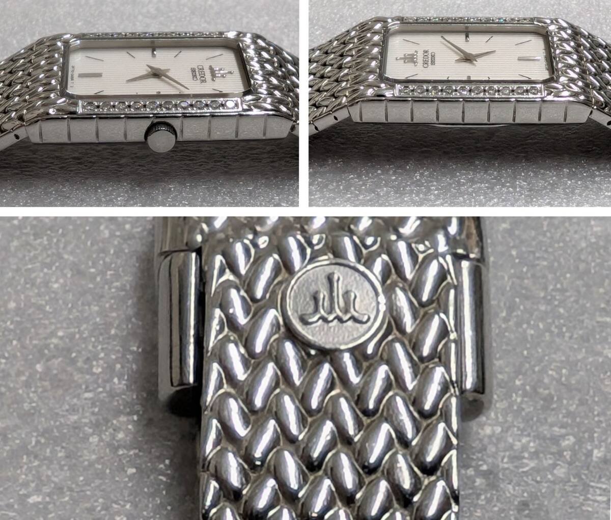 セイコー クレドール 2F70-5A20 スクエア QZ ホワイト文字盤 20Pダイヤ レディース腕時計 稼働品